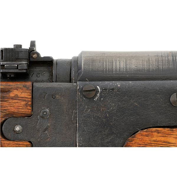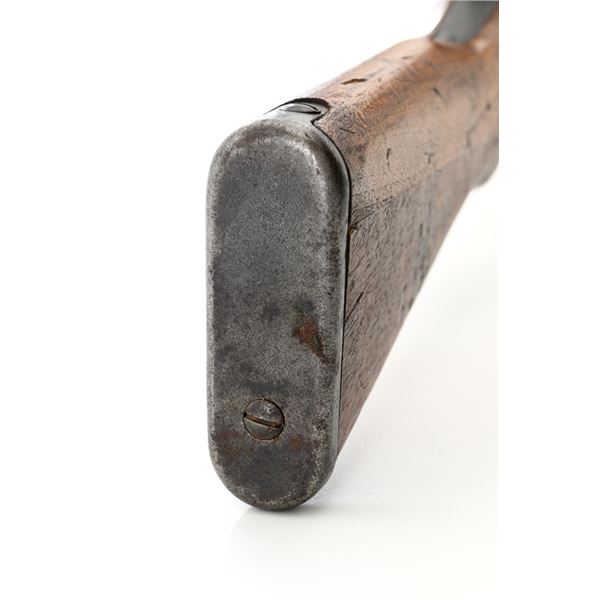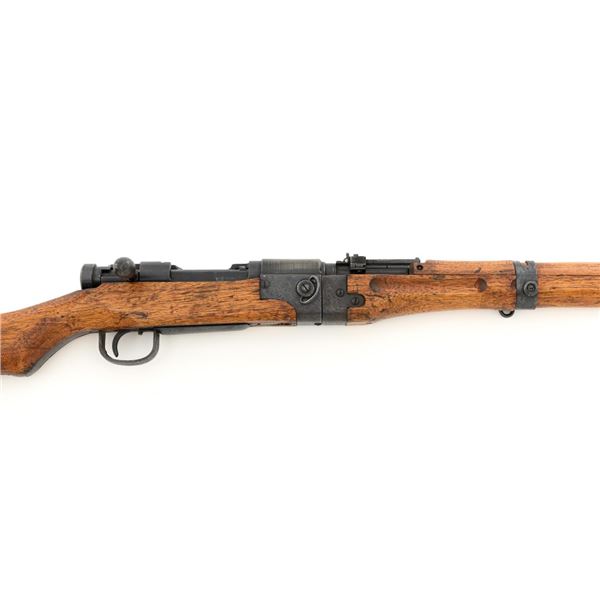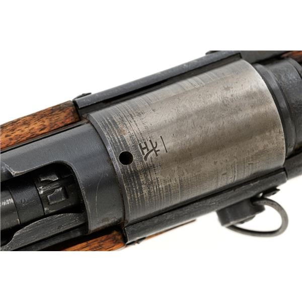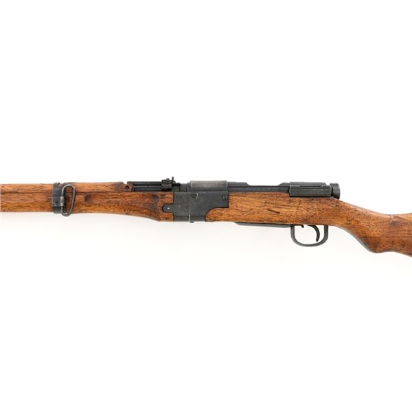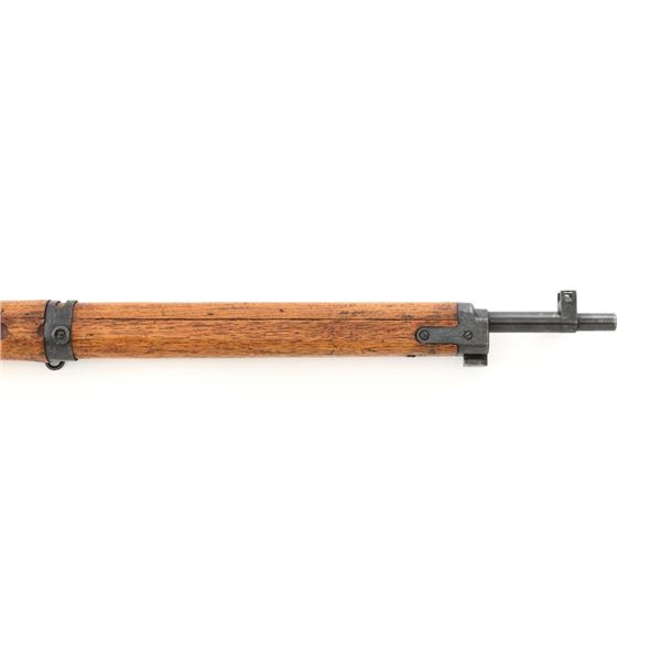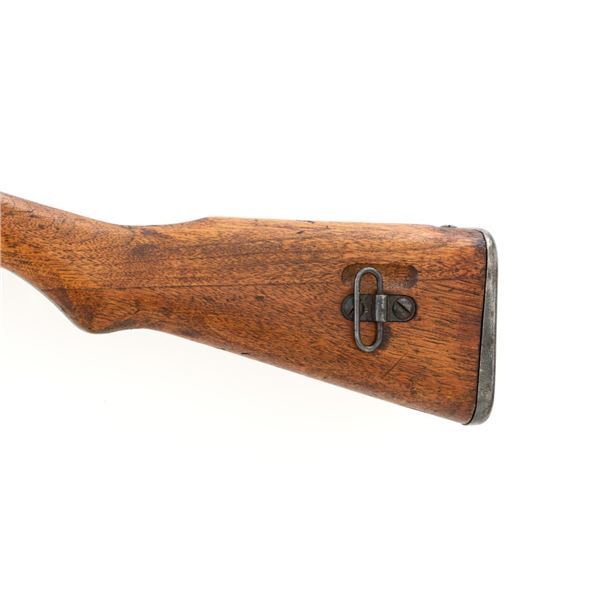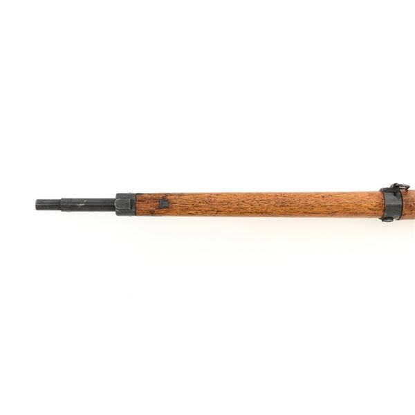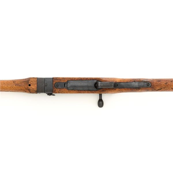 Japanese Type 2 Paratrooper Bolt Action Rifle, #16762, 7.7x58mm cal., 26"barrel, blued finish, hardwood stock and handguard with two-piece buttstock, inverted-"V" front sight with protectors; adjustable folding leaf rear sight with anti-aircraft wings, aperture, and battle sight, graduated to 1500 meters. No cleaning rod. Top of the receiver ring has been polished bright and the only visible marking is the Japanese character for "Type". Left side of the receiver is marked with the symbol for Nagoya arsenal. Assembly number 334" is stamped on left side of the receiver, rear takedown assembly, and d-ring wedge. Number "127" is stamped on the bottom rear of the barrel (visible when disassembled) and underside of the bayonet mount. Matching receiver number "762" is stamped on left side of the front takedown assembly and left side of the barrel. Bolt handle, extractor, firing pin, and safety are numbered "263". No visible import marks. Condition overall is very good with the metal retaining much of its toning finish, wear to the buttplate and polishing to the receiver ring accounts for much of the finish loss. Wood is good with bruises and scratches throughout, the largest are on the right side of the buttstock. Handguard appears to have been lightly sanded. Action operates smoothly. Bore is bright with very good rifling. Est.: $1,400-$1,800. (C&R)