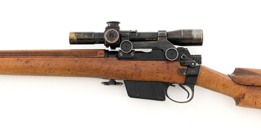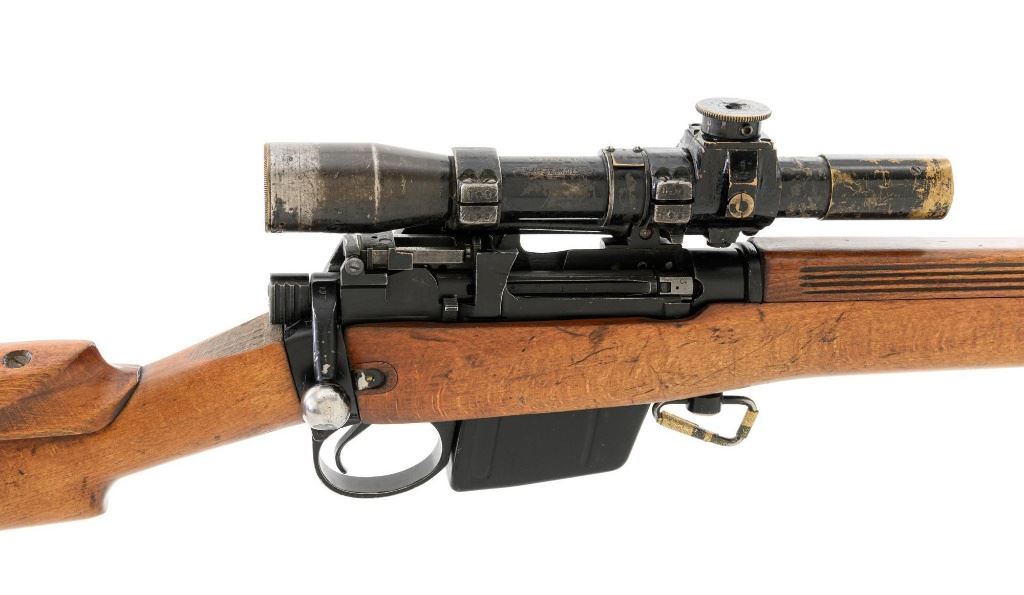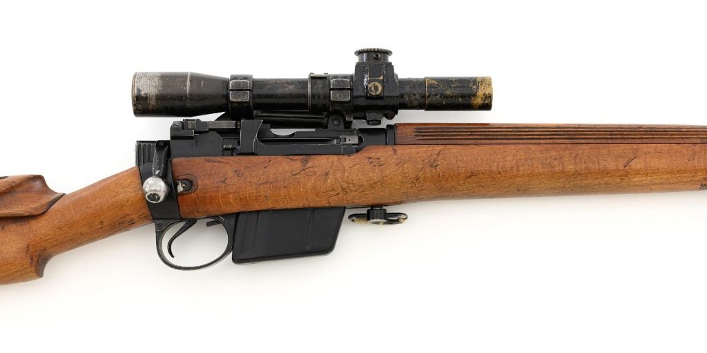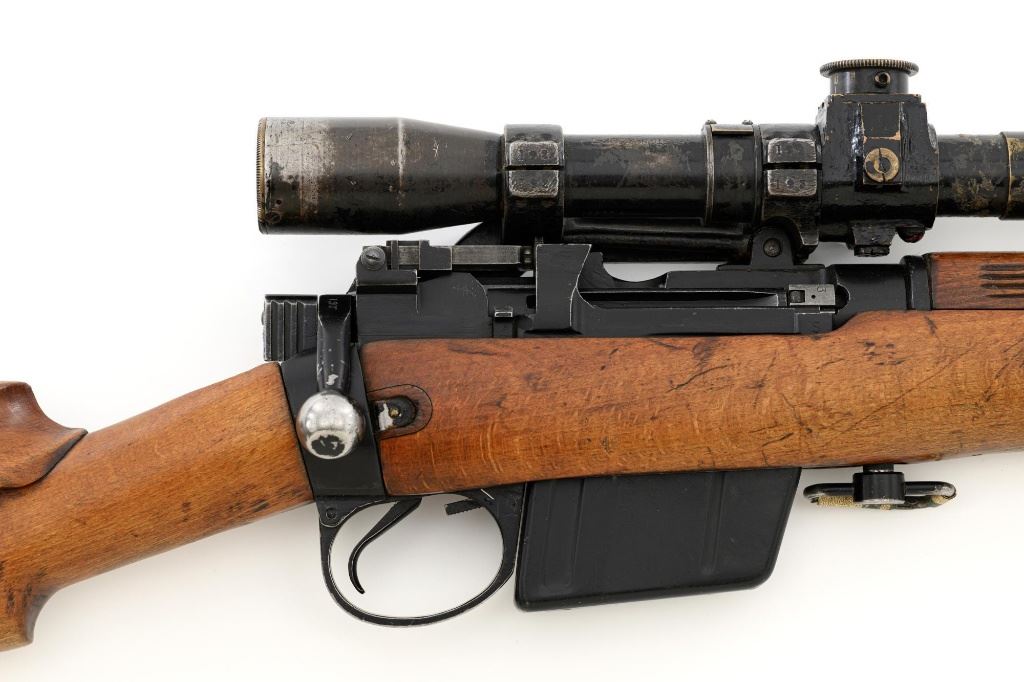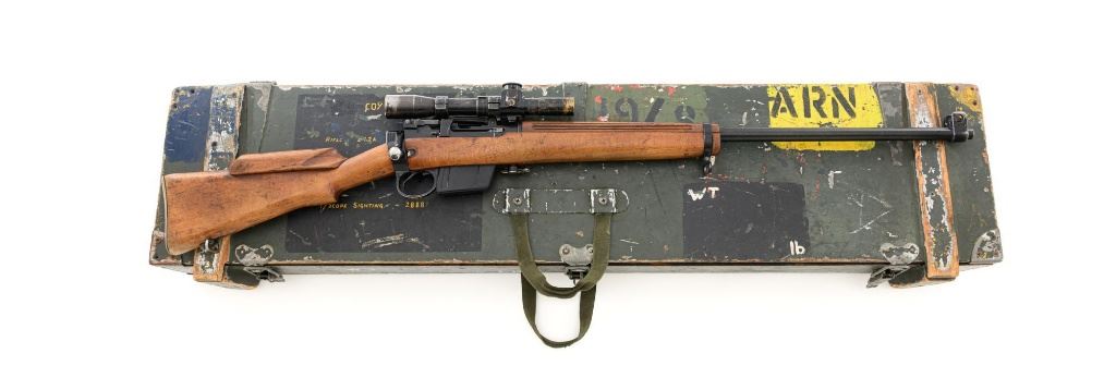 Lot 191 British L42A1 Lee Enfield Bolt Action Sniper Rifle with Telescope, Transport Chest, and Accessories