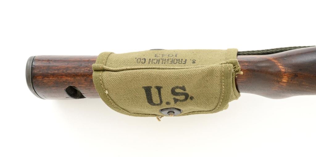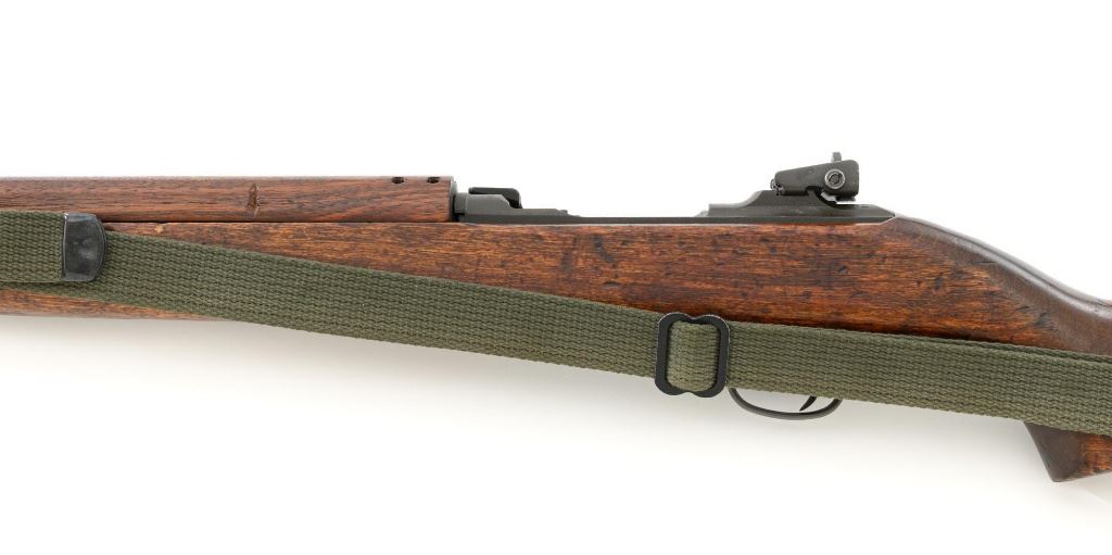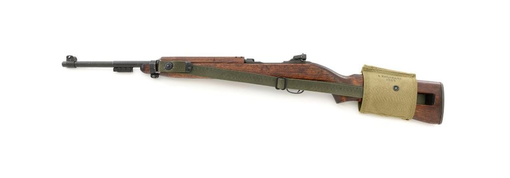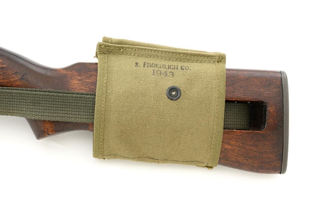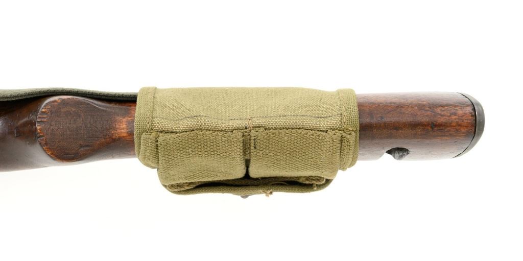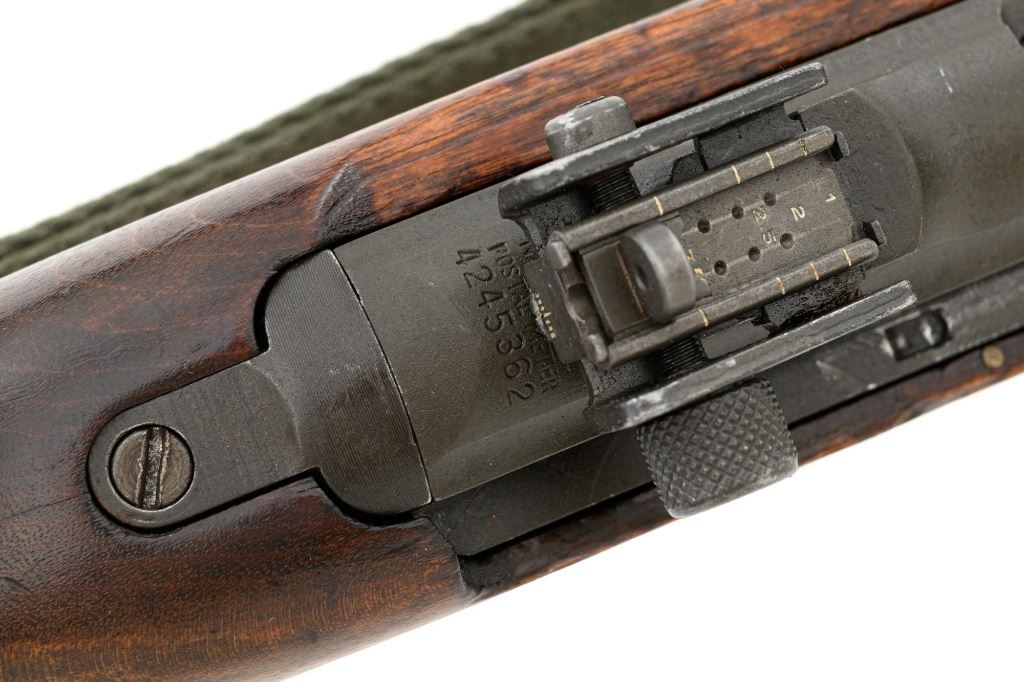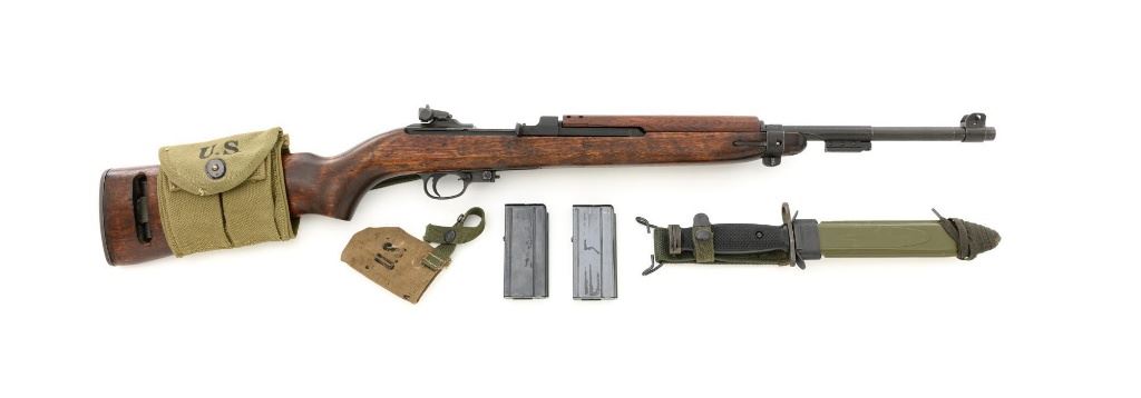 U.S. National Postal Meter Semi-Automatic M1 Carbine, #4245362, .30 carbinecal., 18" barrel, parkerized finish, walnut stock, bayonet lug, blade front sight withears, and adjustable rear peep sight. Included are two (2) "U" marked 15-roundmagazines, reproduction OD sling, 1943 dated stock pouch, 1944 dated muzzlecover, used 1944 Shane MFG. Co. case, post-war K.I. marked M4 bayonet andscabbard. Receiver is marked "NATIONAL/POSTAL METER/4245362". Barrel ismarked "I.B.M. CORP." No import marks. Carbine is in fine overall condition,retaining approx. 90%+ arsenal reparkerized finish, with some patina on the bolt.Low wood stock is marked "P-J" in the sling well, with "(crossed cannons)" on theright side. Stock is in good condition, with scattered mostly moderate marksthroughout, particularly on the left side below the receiver. Action works properly.Bore is excellent with sharp rifling. Accessories range from very good to finecondition. Shane Mfg. Co. case is missing both leather tabs. Bayonet and scabbardare in like new condition. Est.: $1,200-$1,500. (C&R) (Magazines with a capacity greater than 10-rounds are not available for sale to CA residents or other stateswhere such items are prohibited.)