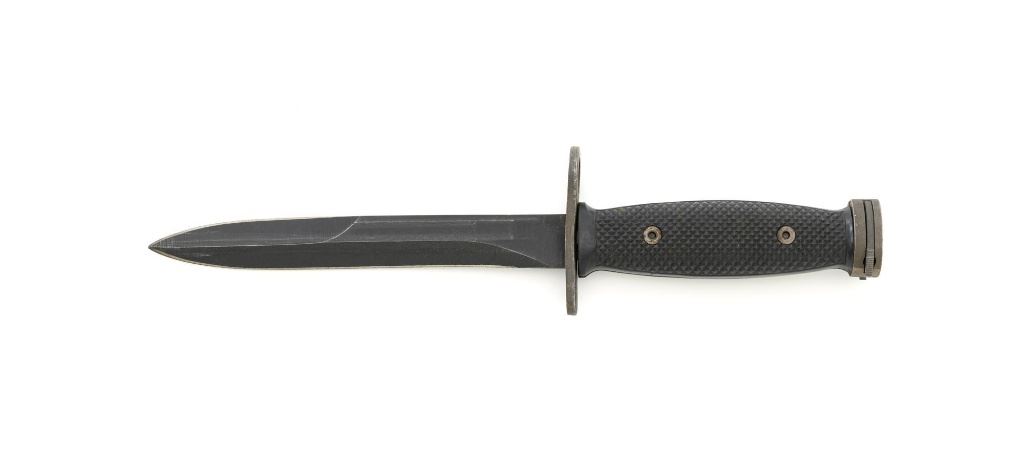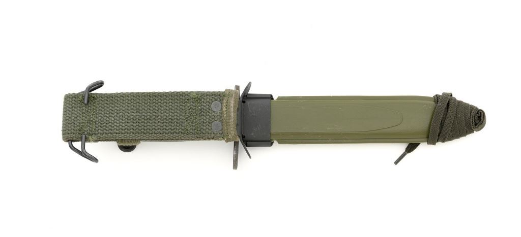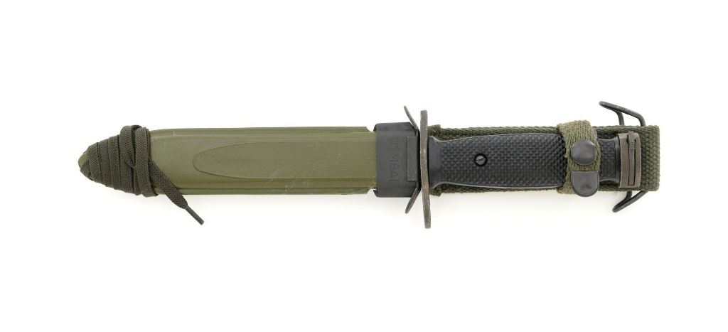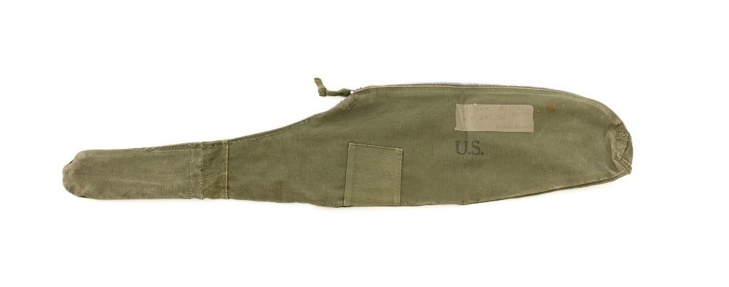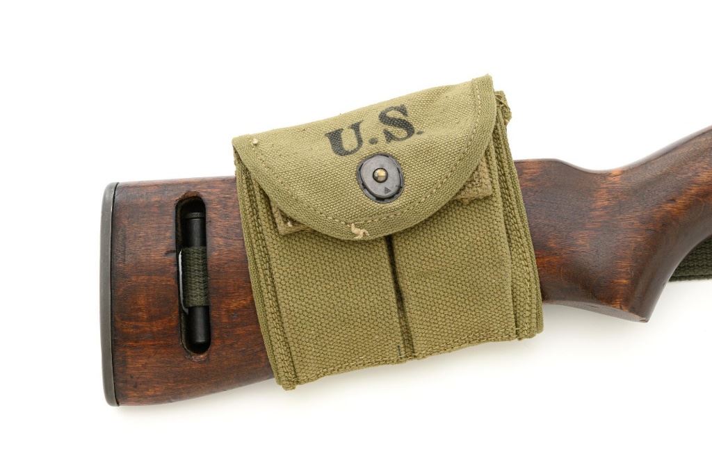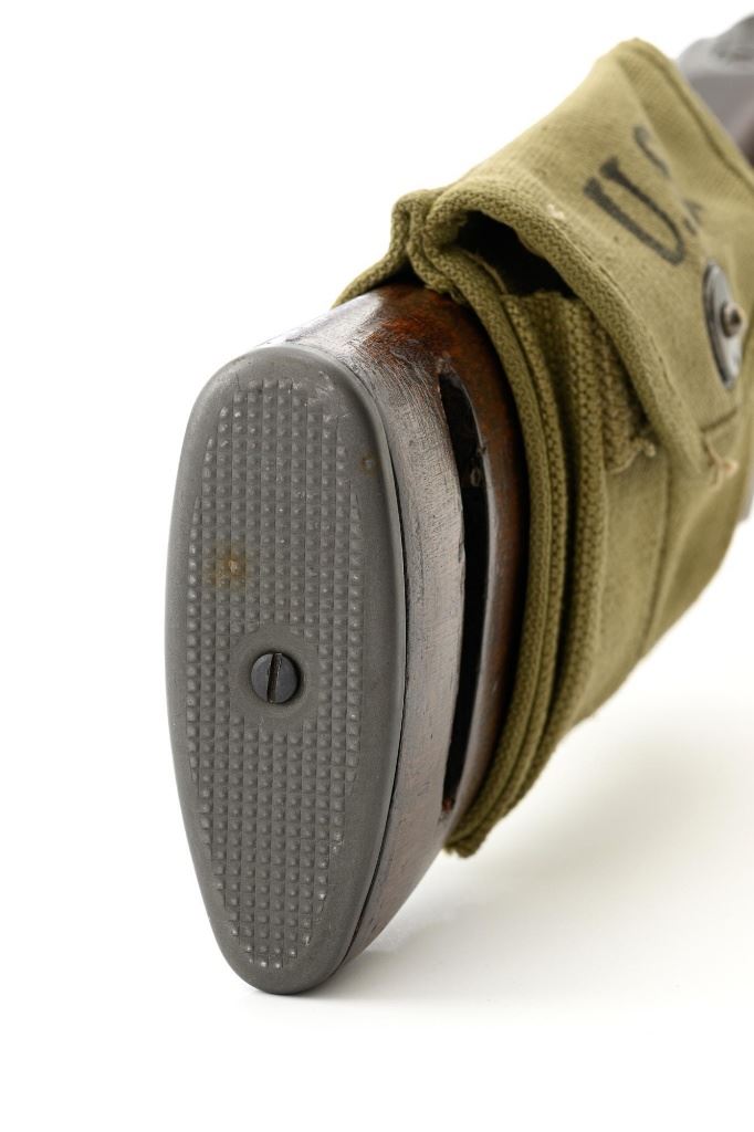 U.S. National Postal Meter Semi-Automatic M1 Carbine, #4245362, .30 carbinecal., 18" barrel, parkerized finish, walnut stock, bayonet lug, blade front sight withears, and adjustable rear peep sight. Included are two (2) "U" marked 15-roundmagazines, reproduction OD sling, 1943 dated stock pouch, 1944 dated muzzlecover, used 1944 Shane MFG. Co. case, post-war K.I. marked M4 bayonet andscabbard. Receiver is marked "NATIONAL/POSTAL METER/4245362". Barrel ismarked "I.B.M. CORP." No import marks. Carbine is in fine overall condition,retaining approx. 90%+ arsenal reparkerized finish, with some patina on the bolt.Low wood stock is marked "P-J" in the sling well, with "(crossed cannons)" on theright side. Stock is in good condition, with scattered mostly moderate marksthroughout, particularly on the left side below the receiver. Action works properly.Bore is excellent with sharp rifling. Accessories range from very good to finecondition. Shane Mfg. Co. case is missing both leather tabs. Bayonet and scabbardare in like new condition. Est.: $1,200-$1,500. (C&R) (Magazines with a capacity greater than 10-rounds are not available for sale to CA residents or other stateswhere such items are prohibited.)