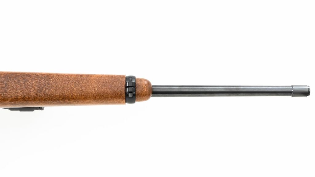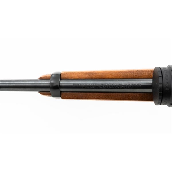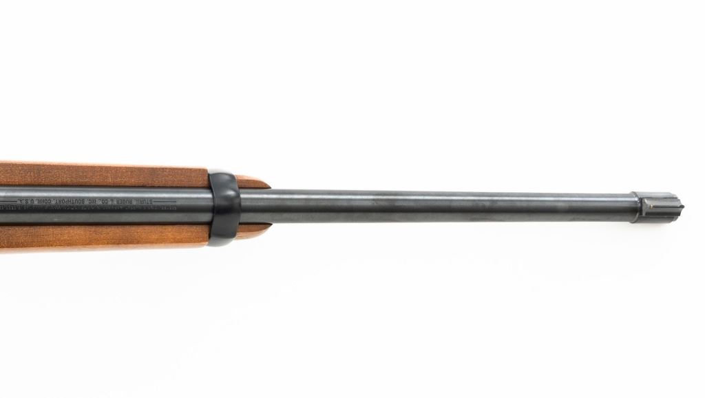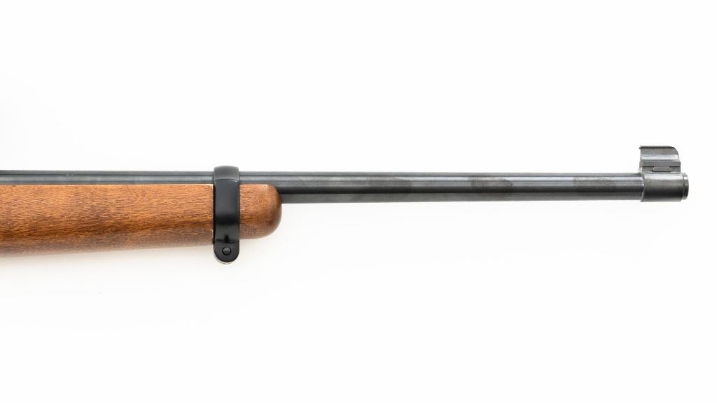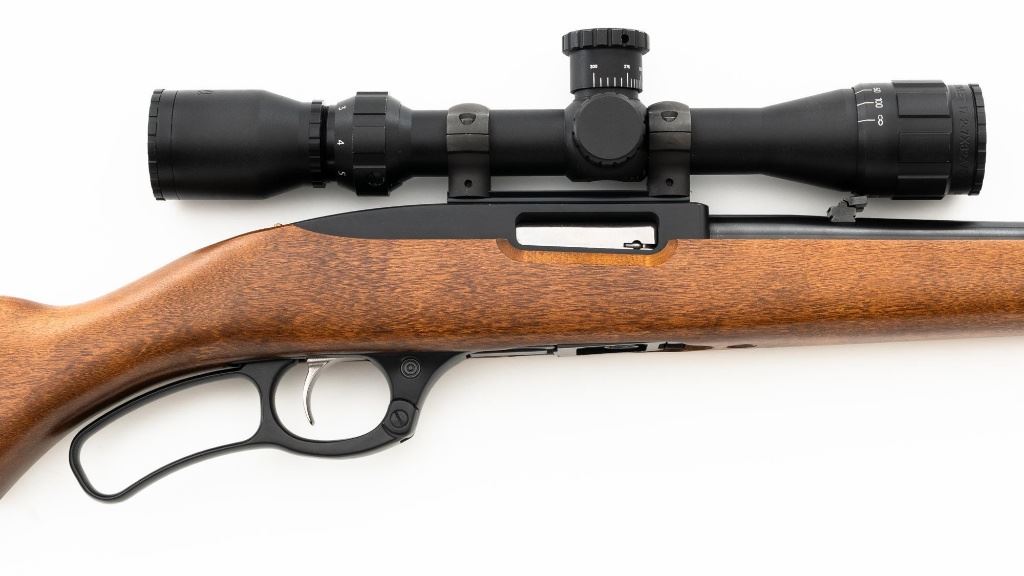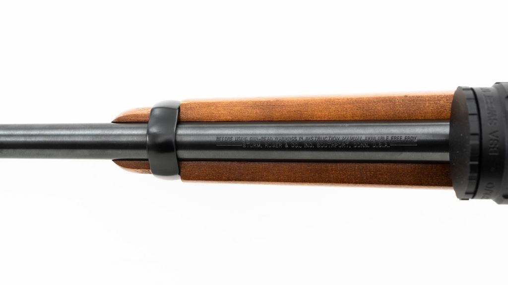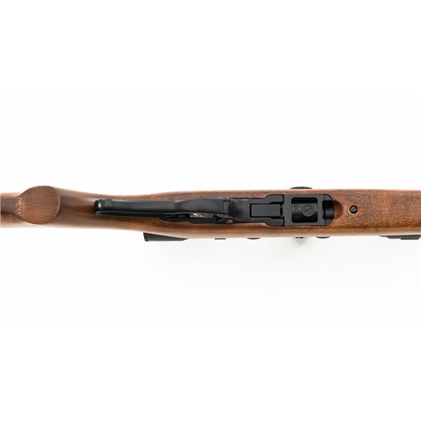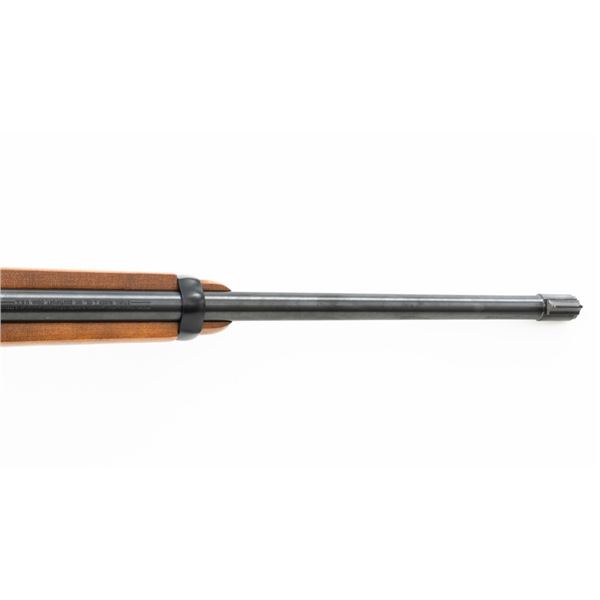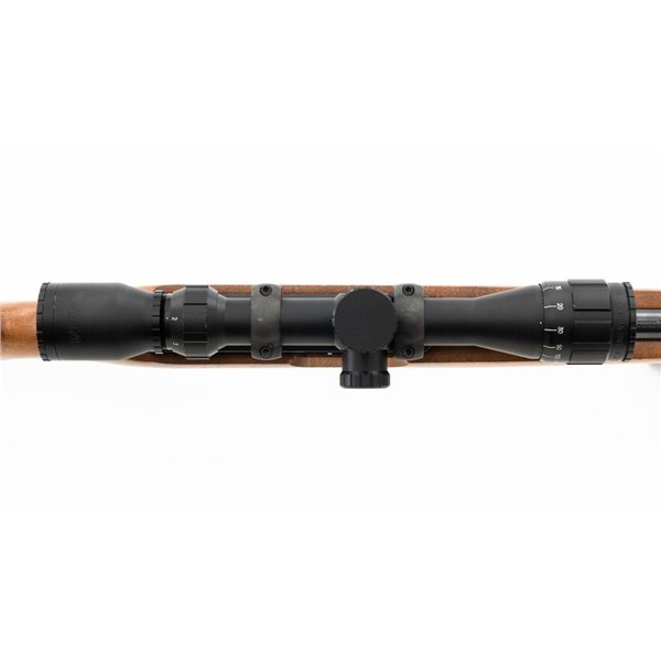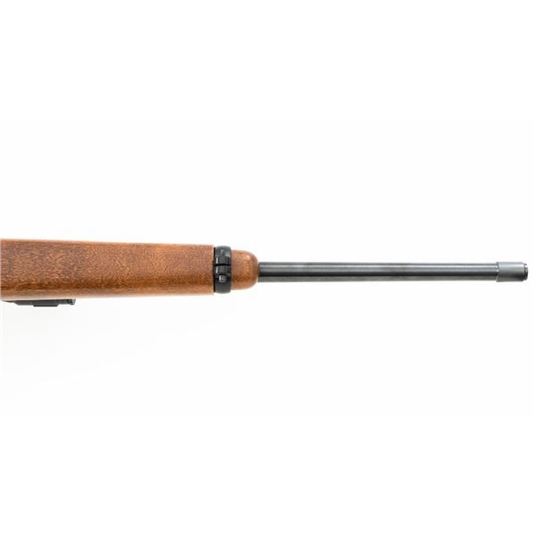 Ruger Model Ninety-Six Lever Action Rifle, #620-18536, .22 LR cal., 18.5" barrel, blue finish, smooth hardwood one-piece pistol grip stock, banded brass tipped blade front and notched folding rear sight. Includes one Ruger 10-round rotary magazine. Mfgd 1996, the first year of production. Topped with a one-piece base, rings, and BSA Sweet 17 2-7x scope with an adjustable objective, and target turrets, finished in matte black, with duplex reticle. Scope is in excellent condition with bright, clear optics. Rifle is in excellent overall condition, retaining approx. 99%+ factory finish, with only minor marks, showing little use. Stock is in excellent condition with only a few light storage marks. Action is crisp. Bore is mirror bright with excellent rifling. Est.: $700-$900. (Modern)