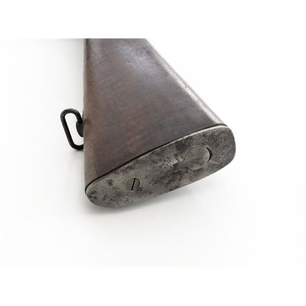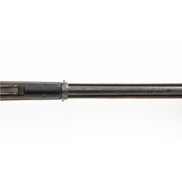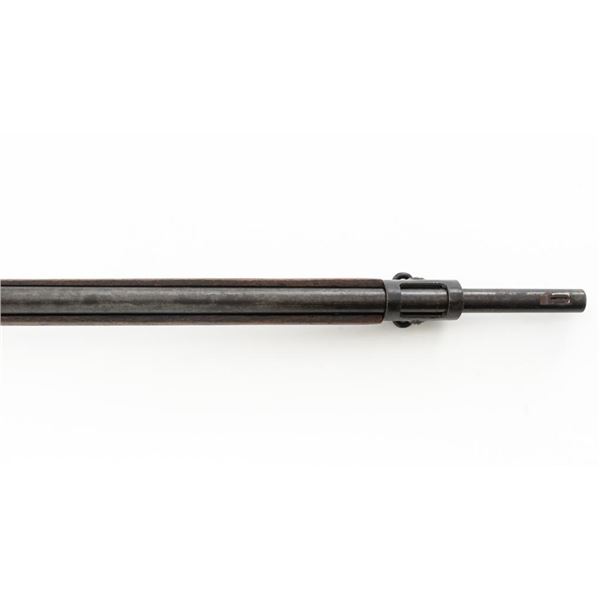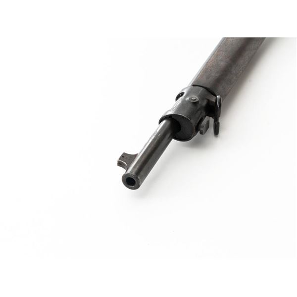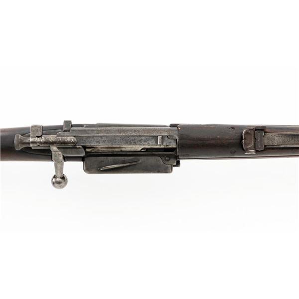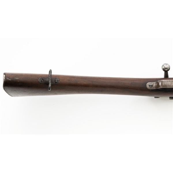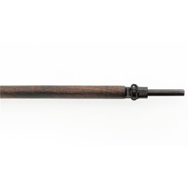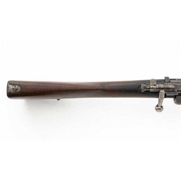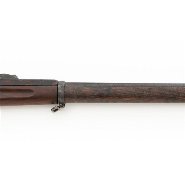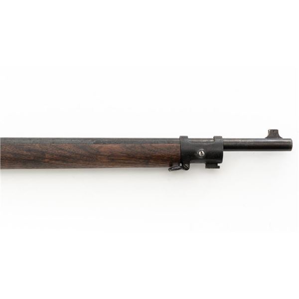 U.S. Springfield Armory Model 1898 Krag Bolt Action Rifle, #289306, .30-40 Krag cal., 30" barrel, blued finish, walnut stock, missing the front sight blade, with a M1902 adjustable "U"-notched rear sight. Receiver is marked "U.S./MODEL 1898 SPRINGFIELD ARMORY 289306" on the left side. Rifle is in good overall condition. Metal with a mottled appearance consisting of toning blue and moderate patina, with a few scattered spots of light rust. Stock is marked with a boxed "JSA/1900" on the left side, and a circled "P" behind the trigger guard. Forend of the stock is joined under the barrel band and is modified from another rifle, and shows more wear than the rear portion. Remainder of the stock is very good, with light handling marks and scratches. Rear of the handguard was repaired with plastic wood and has several dents and scratches. Action works properly. Bore is good bore with light pitting and clear rifling. Est.: $500-$800. (C&R)