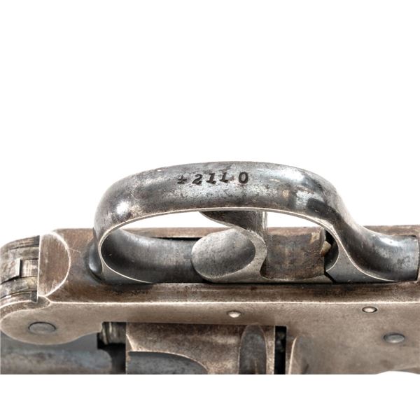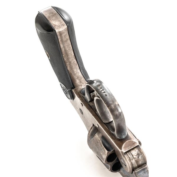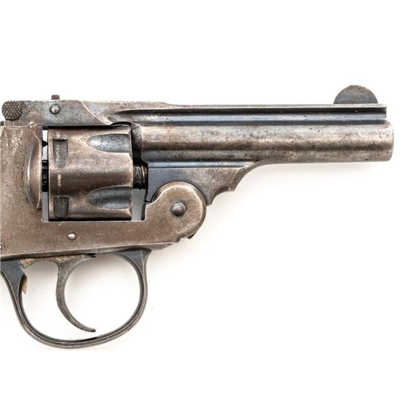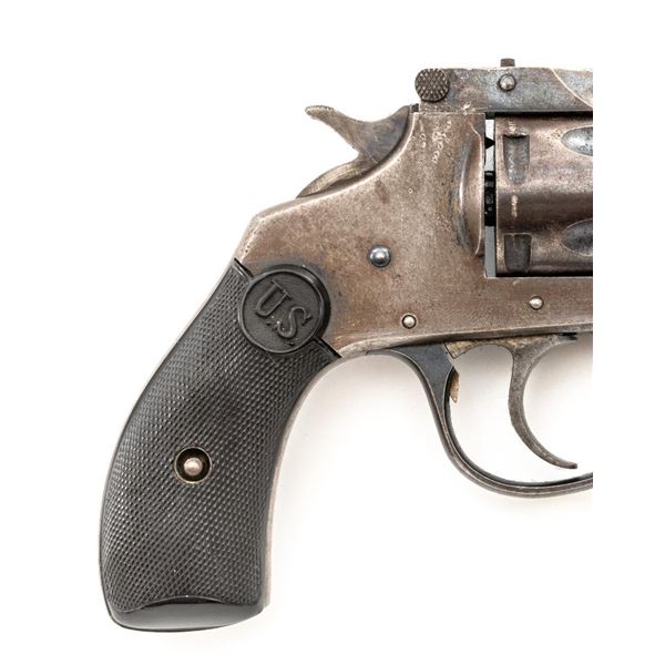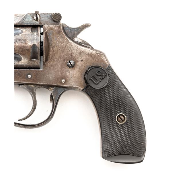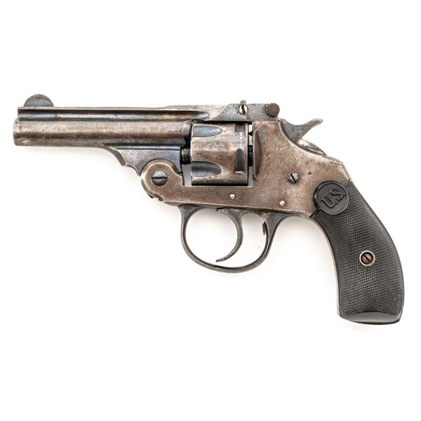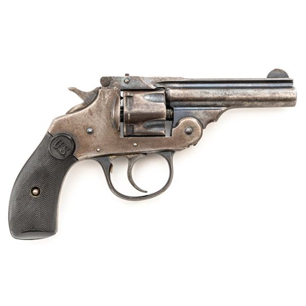 U.S. Revolver Co. Top Break Five-Shot Double Action Revolver, #42110, .32 cal., 3" barrel, blued finish, factory checkered black hard rubber two-piece grips, fixed blade front sight, and fixed "U"-notched rear sight incorporated into the barrel release lever. Standard markings for this model are correct. Made by Iver Johnson Arms & Cycle Works Co. circa 1910-1934. Overall condition of this revolver is good retaining approx. 35%-40% original finish, with the balance gone to an even brown patina. Factory markings are clear. Grips are good. Action functions well. Bore is very good with clear rifling. Est.: $100-$150. (C&R/PPT)