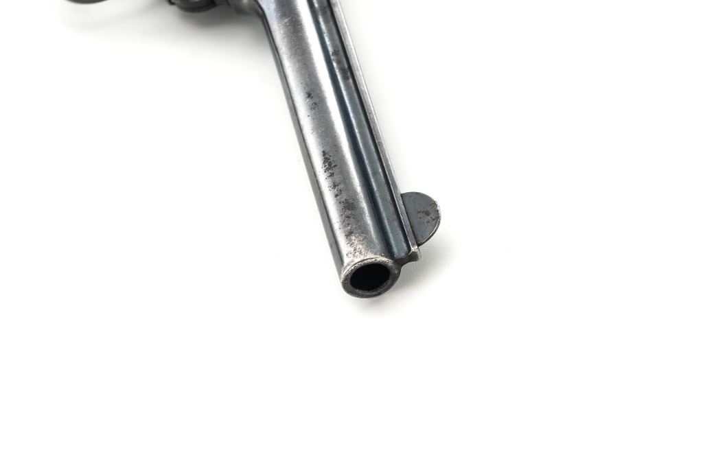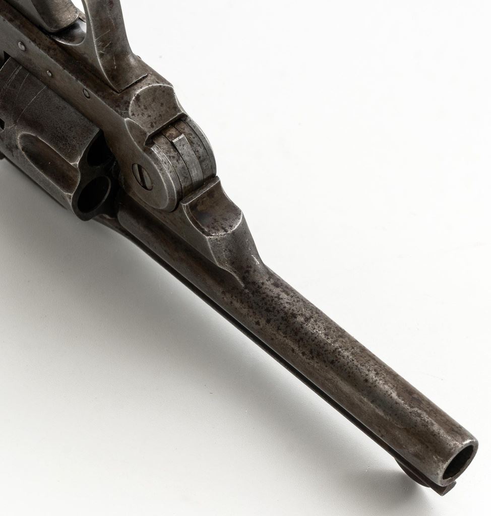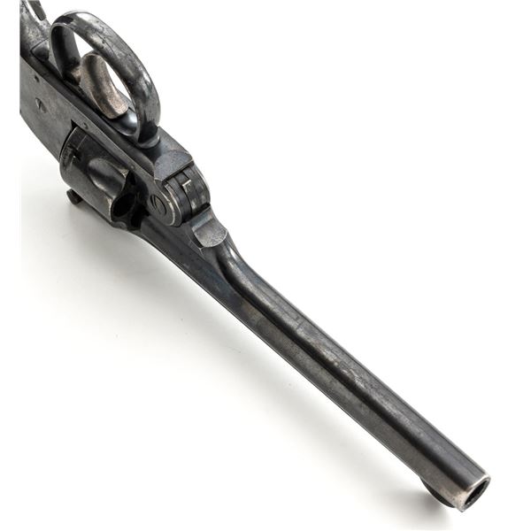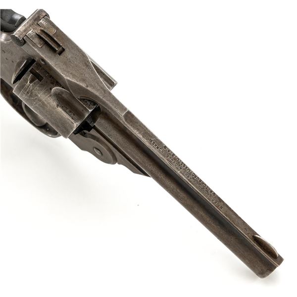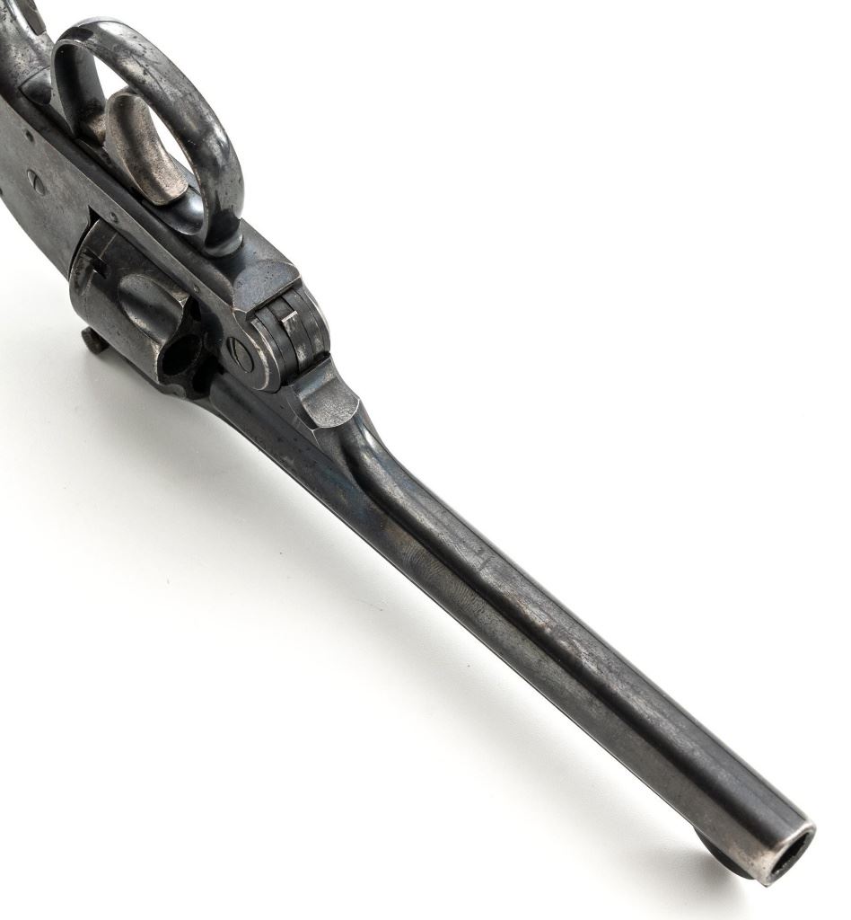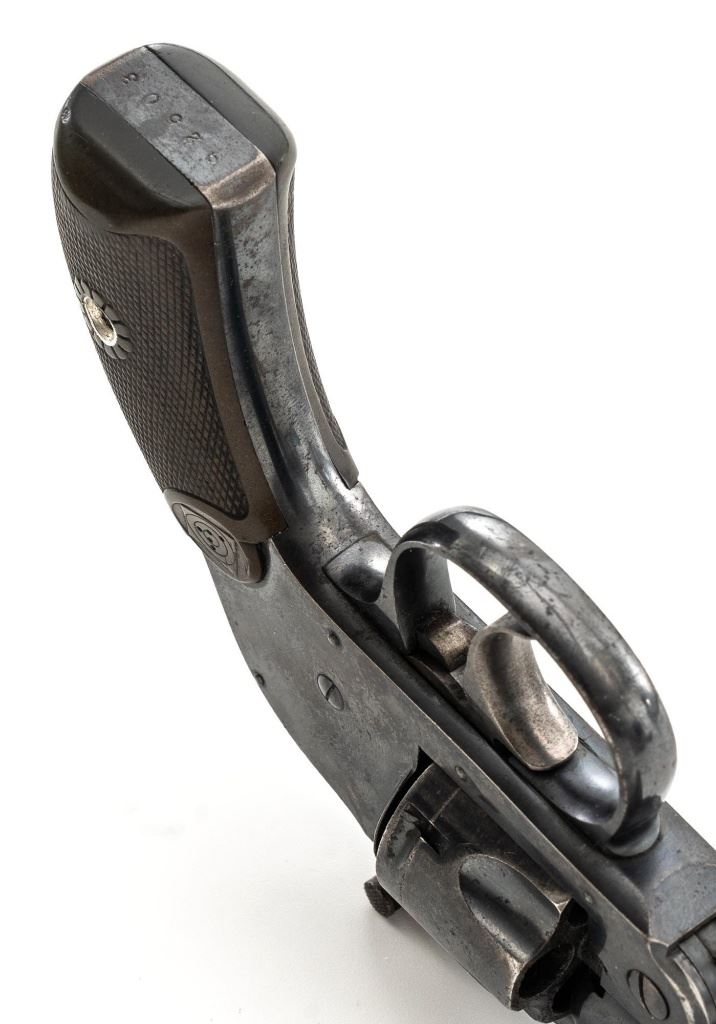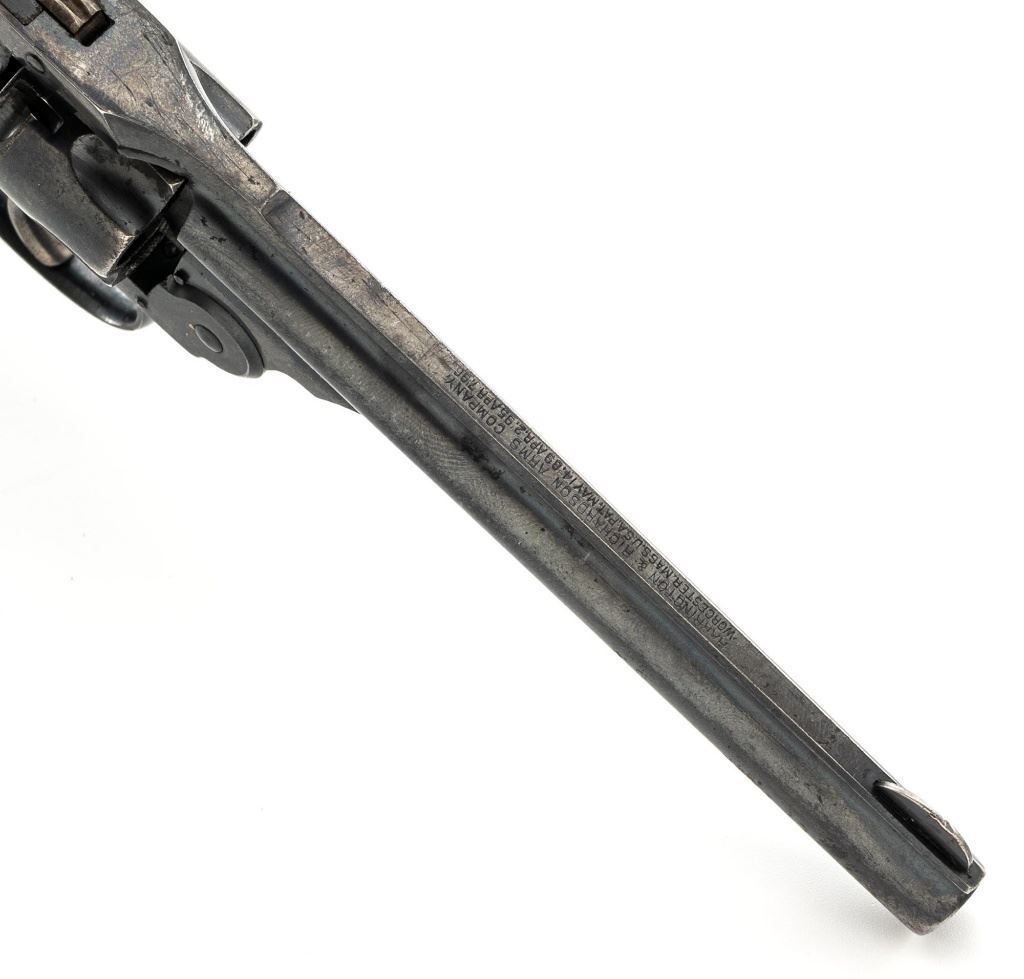 Lot of Two (2) Top-Break Double Action Revolvers by Iver Johnson & H&R: 1.) Iver Johnson 3rd Model Safety Automatic Revolver, #25186, .38 S&W cal., 4" barrel, nickel finish, checkered hard rubber two-piece grips, blade front sight and fixed "U"-notch rear sight. Revolver is in good overall condition, showing considerable thinning finish drifting to gray patina, with scattered spots of erosion and lighter pin prick pitting on the frame. Grips with fine checkering detail. Action functions and locks up securely. Bore is fair with moderate erosion and scattered lighter spots of pitting, showing defined rifling. 2.) Harrington & Richardson Hammerless Top-Break Double Action Revolver, #92503, .32 S&W cal., 5" ribbed barrel, blue finish, checkered hard rubber two-piece grips, blade front sight, fixed "U"-notch rear sight, and color case hardened trigger. Revolver is in near fine overall condition, retaining approx. 90%-92% thinning factory finish, with wear at the muzzle, erosion, and thinning finish. Front and backstrap have spots of light surface rust and edgewear. Grips are fine with good checkering detail and small handling marks. Action functions well. Bore is fair, with spots of light erosion, displaying defined rifling. Est.: $200-$400/lot. (C&R)