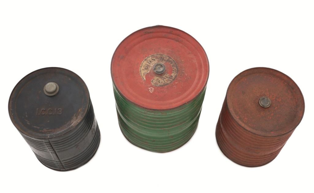 Lot 410 Large of Three (3) Circa Early 1900s Metal Gunpowder Storage Containers