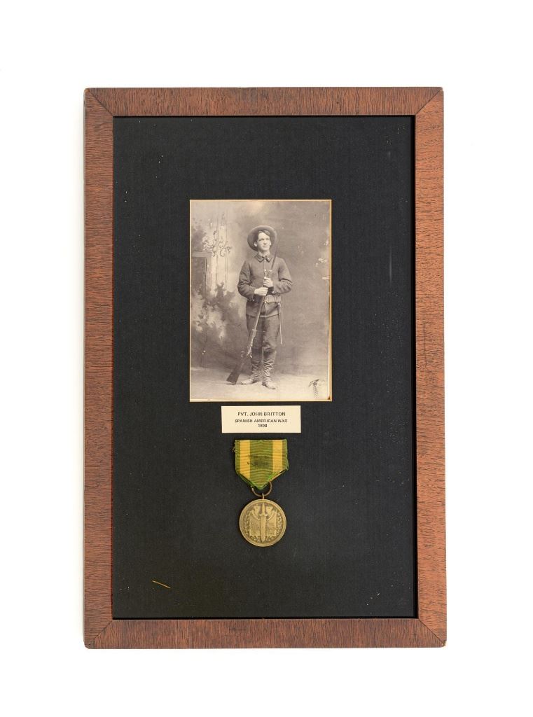 Lot 420 Framed Spanish American War Photograph of Pvt. John Britton with Spanish Service Medal