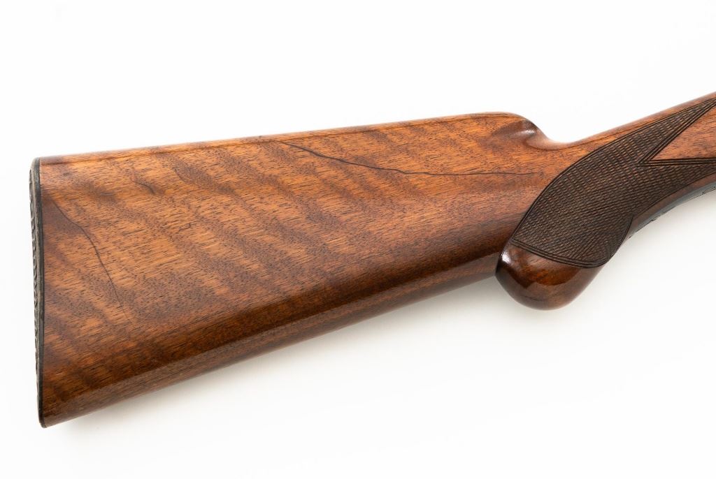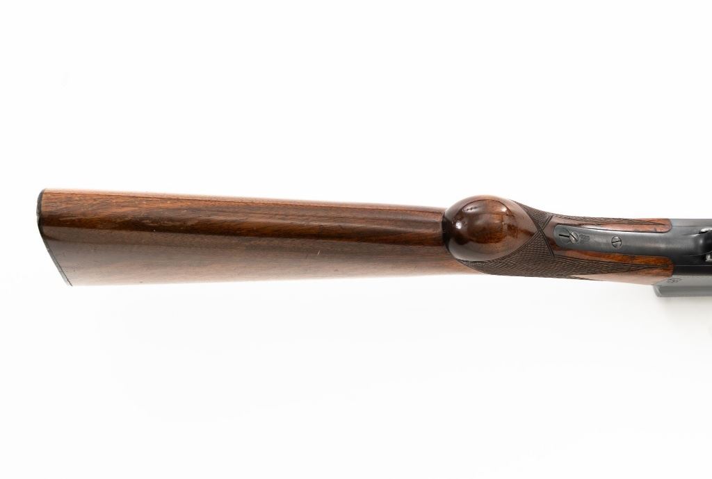 Browning Auto-5 "Light 12" Model Semi-Automatic Shotgun, #8G32325, 12 ga., 27-1/2" vent rib barrel has a 2-3/4" chamber and is choked Mod. The action is the standard version originally improved. Slender, finger-groove forend and round knob long tang (RKLT) pistol grip buttstock are oil-finished "B" grade walnut, with hand checkering at 22 LPI, and an original "FN/Browning Automatic" buttplate. Mfgd in Belgium, in 1958. Condition is very good, with moderate handling marks to wood and nominal wear to the action, which closes very tight and functions correctly; bore is mirror bright. Est.: $700-$900. (C&R)