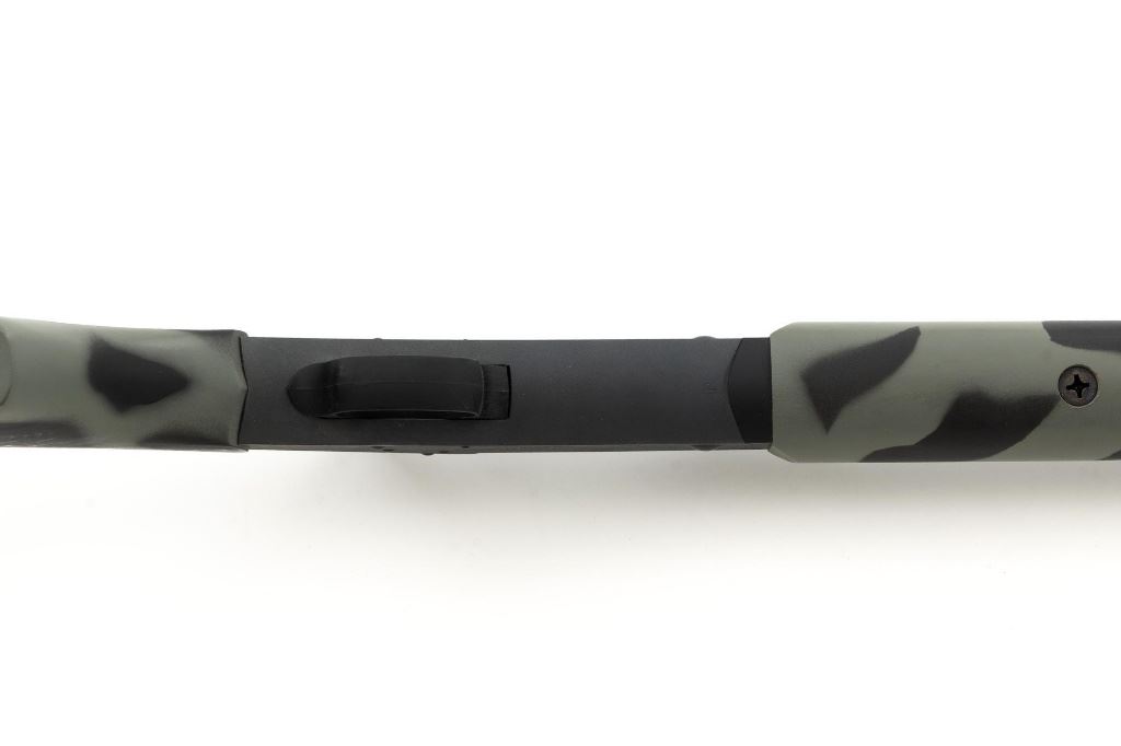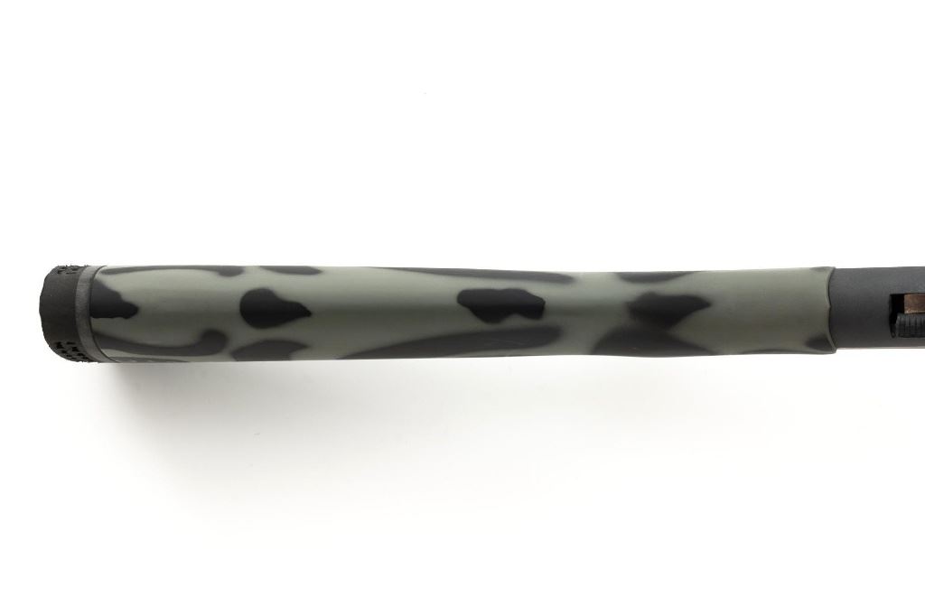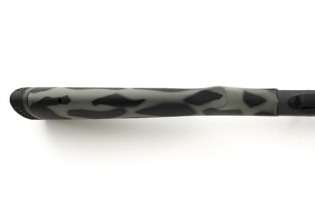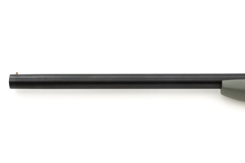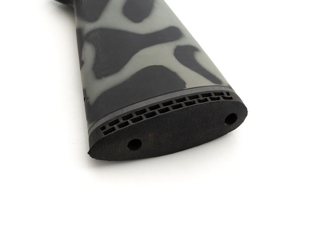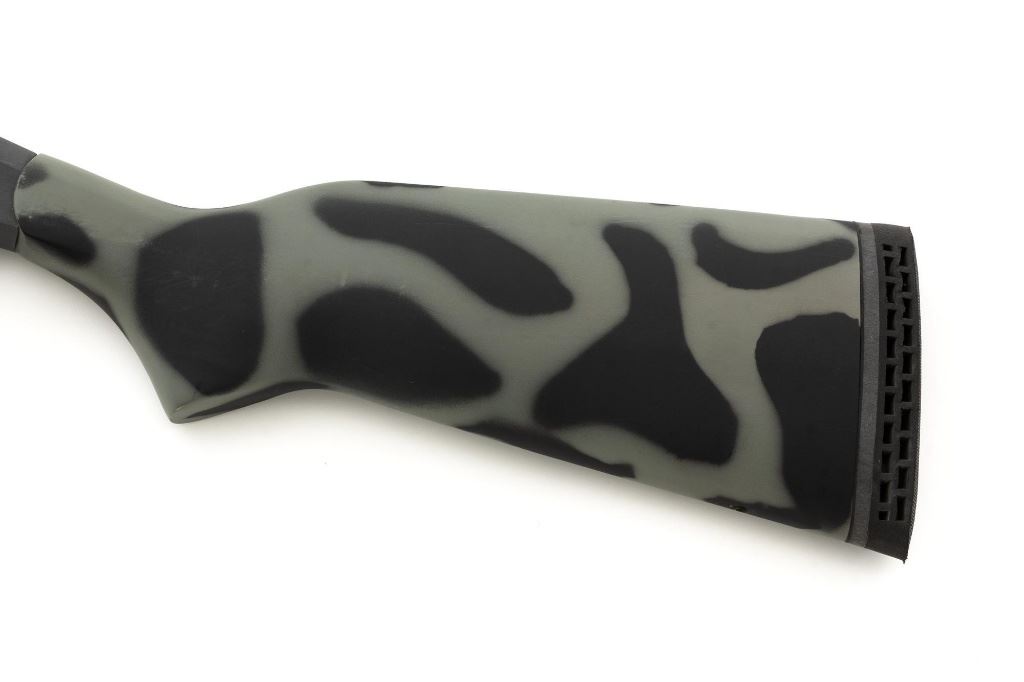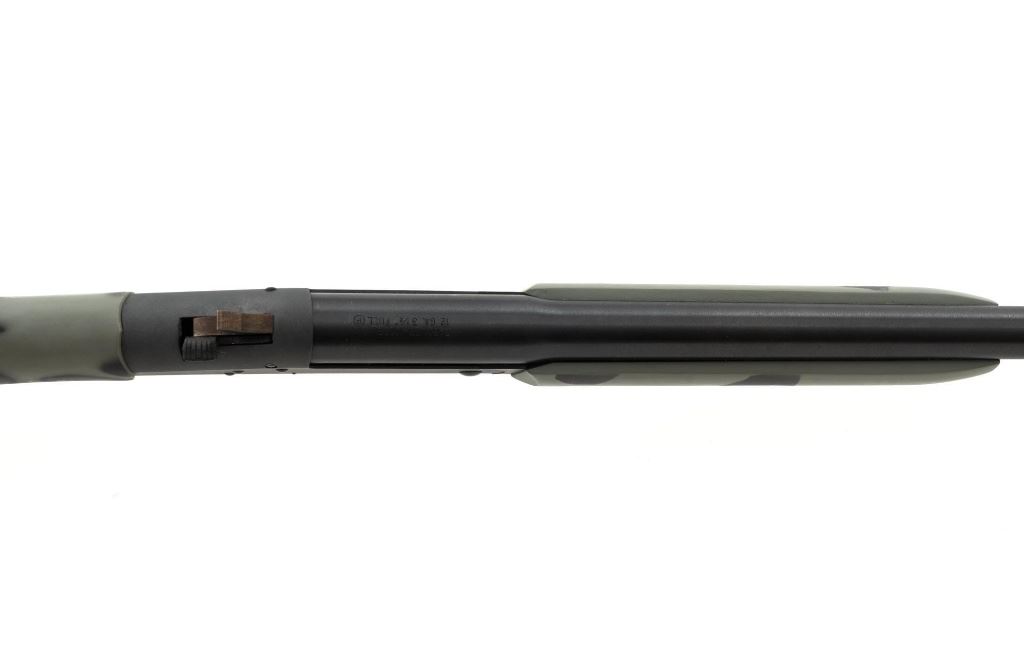 New England Firearms Pardner Model SB1 Single Shot Shotgun, #NM384826, 12 ga., 24" barrel with a 3.5" chamber and Full choke, blue and matte black finish, smooth camo synthetic pistol grip stock with a semi-beavertail forend, brass bead front sight, exposed hammer, extractor, and plastic trigger guard. Buttstock ends with a ventilated rubber recoil pad, providing a 14.25" LOP. Shotgun is in excellent overall condition, retaining approx. 98%-99% factory finish on the barrel with minor handling marks. Stock is in excellent condition with only small handling marks. Action functions well and locks up securely. Bore is excellent. Est.: $150-$300. (Modern)