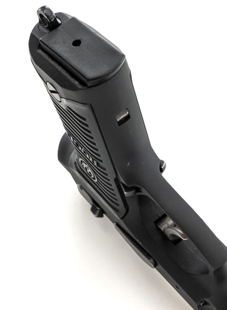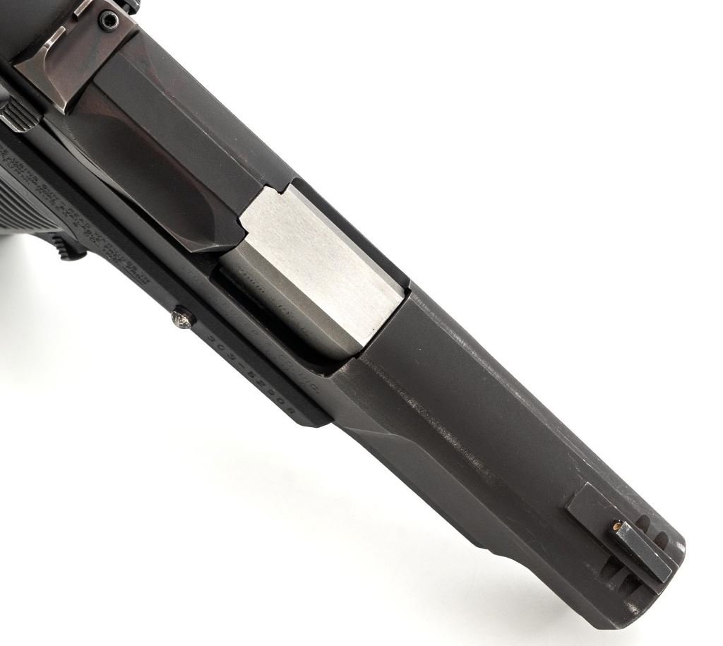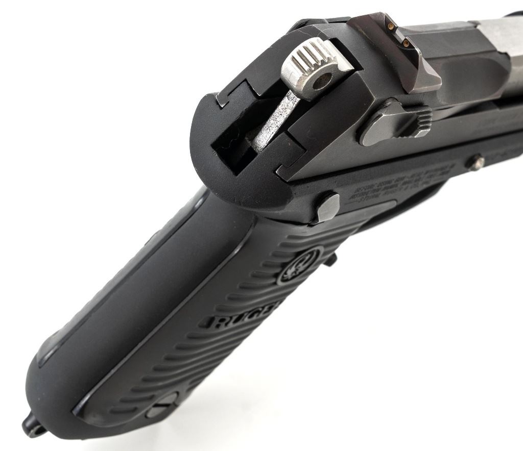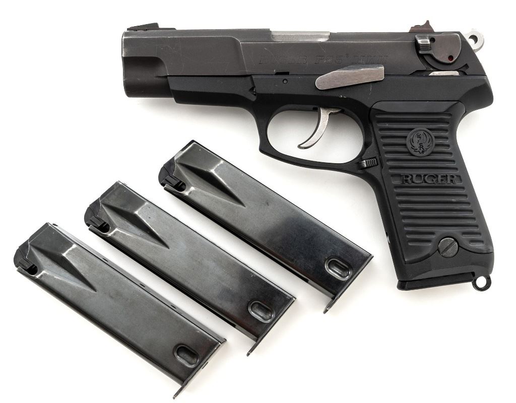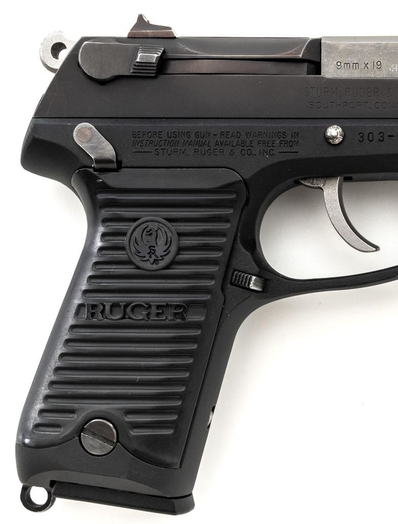 Ruger P85 MK II Semi-Automatic Pistol, #303-52908, 9mm, double/single action, 4.5" barrel, blued slide which has begun to tone to a plum color, black aluminum frame, black plastic Ruger serrated grips, ambidextrous safety/decocker, ambidextrous magazine release, with white 3-dot sights. Mfgd 1991. Includes one Mec-Gar 10-round magazine and three (3) unmarked 15-round magazines. Condition is very good showing finish wear to the decocker, rear sight, and some of the high points. Frame and slide show scattered light handling marks. Action is smooth, bore is bright with strong rifling. Est.: $300-$400. (Modern/PPT) (Magazines with a capacity greater than 10-rounds are not available for sale to CA residents or other states where such items are prohibited.)