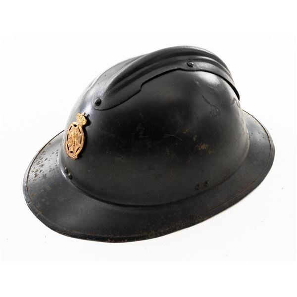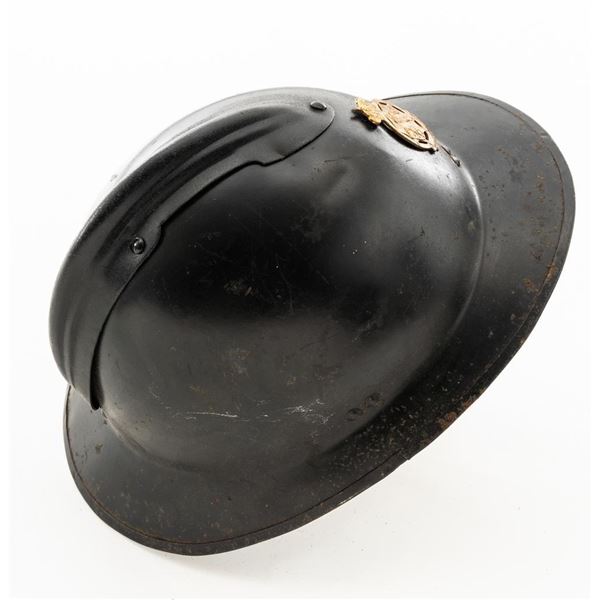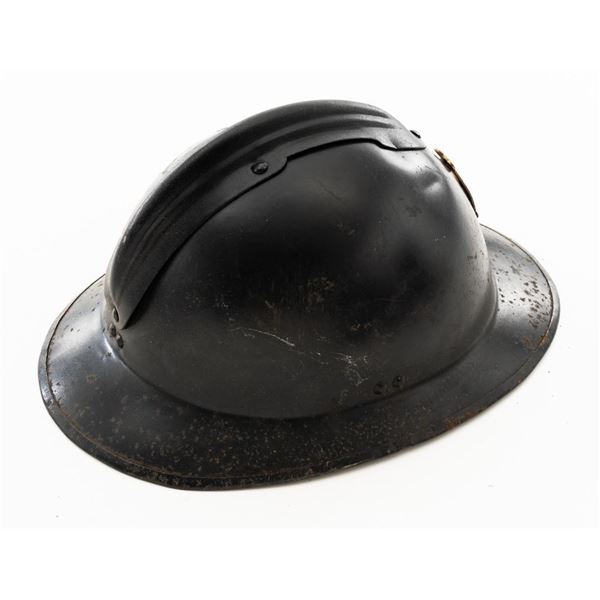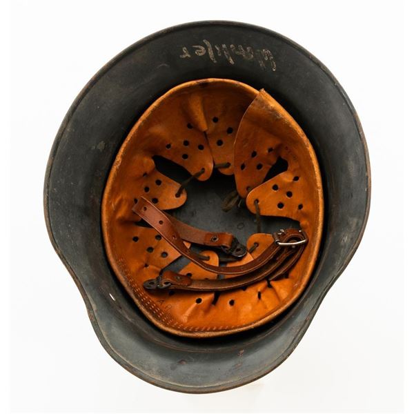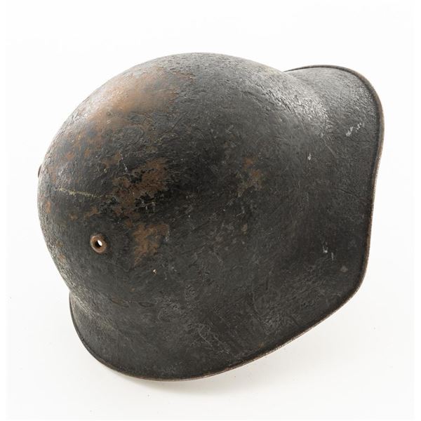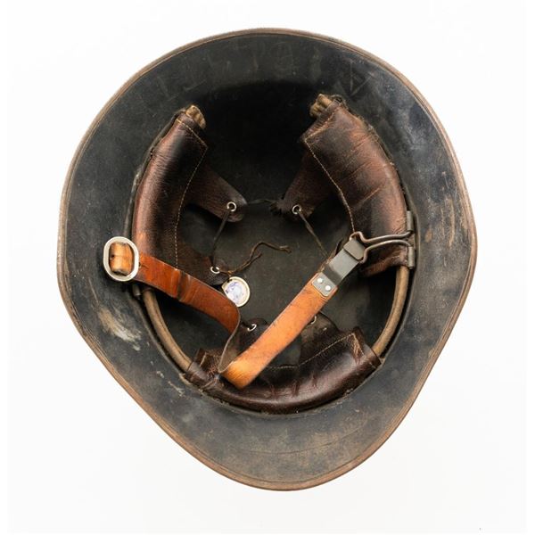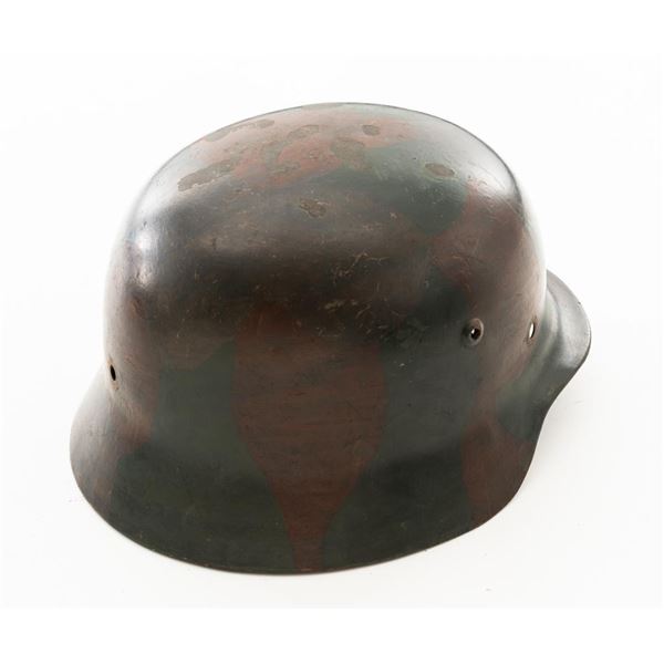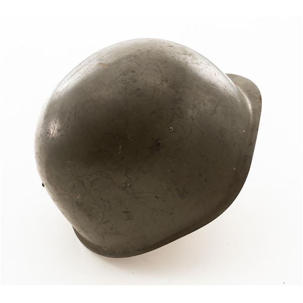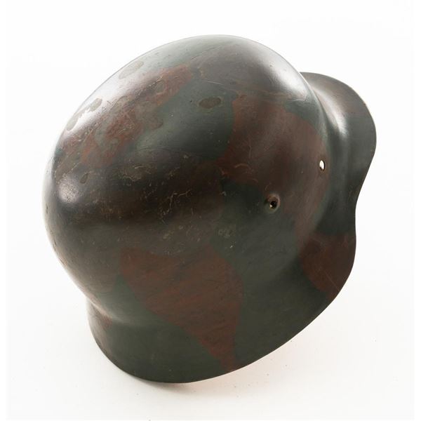 Lot of Five (5) Steel Military Helmets: 1.) Czech M53 with liner and broken leather chin strap. Marked "(crossed swords)56". In good condition, with scratches to shell, and dryness to the liner. 2.) German M40, no visible makers marks, named "Winkler", green/red painted, detached liner marked "57-61", with brown chin strap. In very good condition. 3.) Swiss M1918 with liner and chin strap, "A BLATTY" scratched into inside rear. In good condition with wear, patina, and darkening to leather. 4.) French Adrian with crowned badge, liner, and chin strap, painted black. In good condition with a few dents and patina. Liner is good. 5.) Bulgarian M36 with size 59 liner, marked with national emblem. Condition is fair with wear and surface rust. Liner and chin strap are good. Est.: $200-$400/lot.