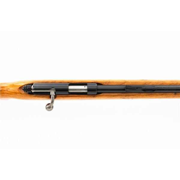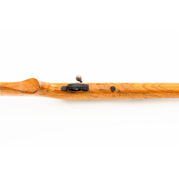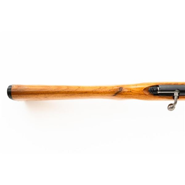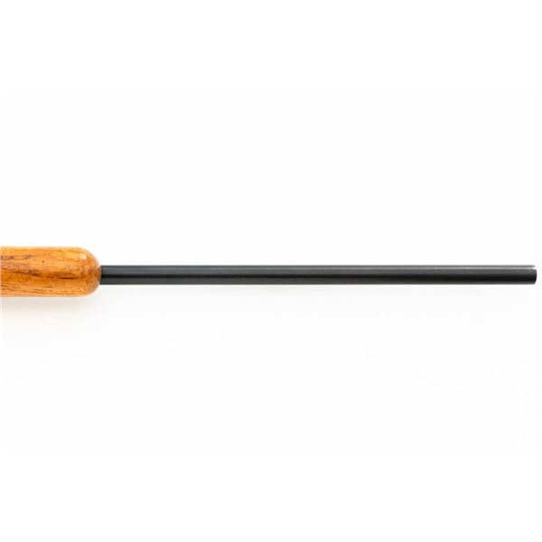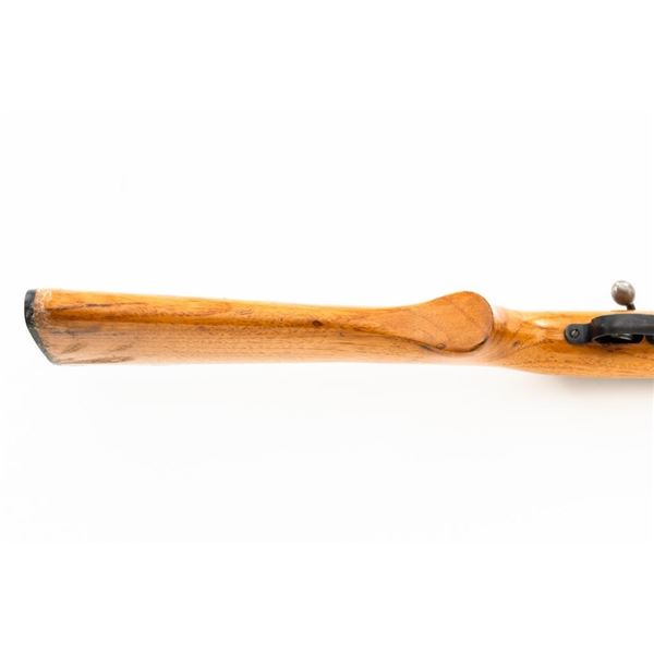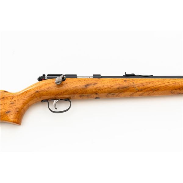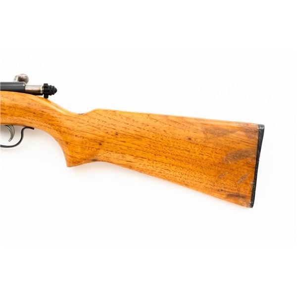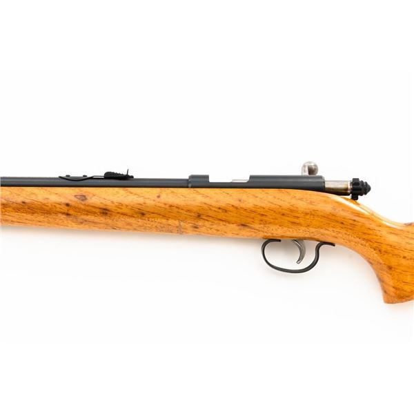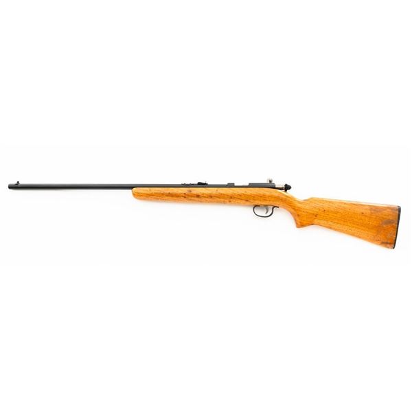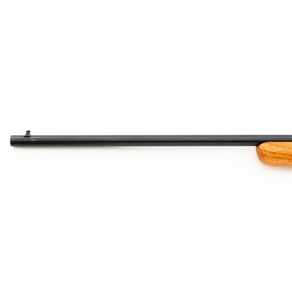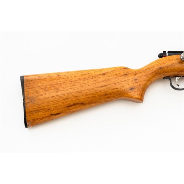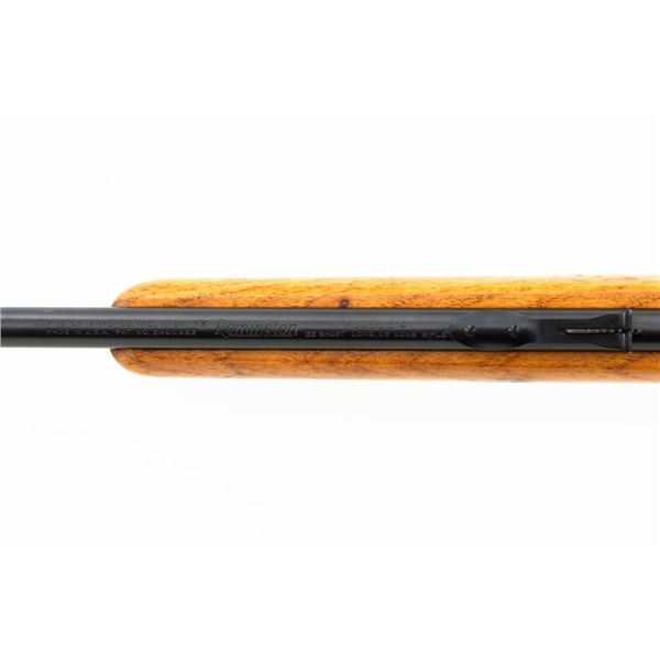 Remington Model 514 Bolt Action Single Shot Rifle, #NVSN, .22 S-L-LR cal., 24" barrel, blue finish, hardwood stock, dovetailed blade front sight, and standard "U"-notched rear sight with elevator. Rifle is in very good overall condition, retaining approx. 94%-96% factory finish, with thinning to the trigger guard and light handling marks to the barrel and receiver. Factory stock has been sanded with an added coat of lacquer applied. Both sides of the buttstock have an unknown substance stuck to the wood, this extends approx. 3" from the butt forward. This could be from being stored in a rifle boot, allowing the material to adhere to the surface. Action functions smoothly. Bore is bright. Est.: $150-$300. (C&R)