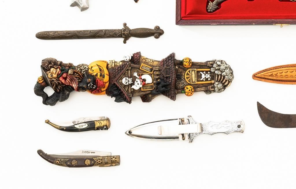 Lot 747 Lot of Seventeen (17) Fixed Blade and Folding Novelty Knives