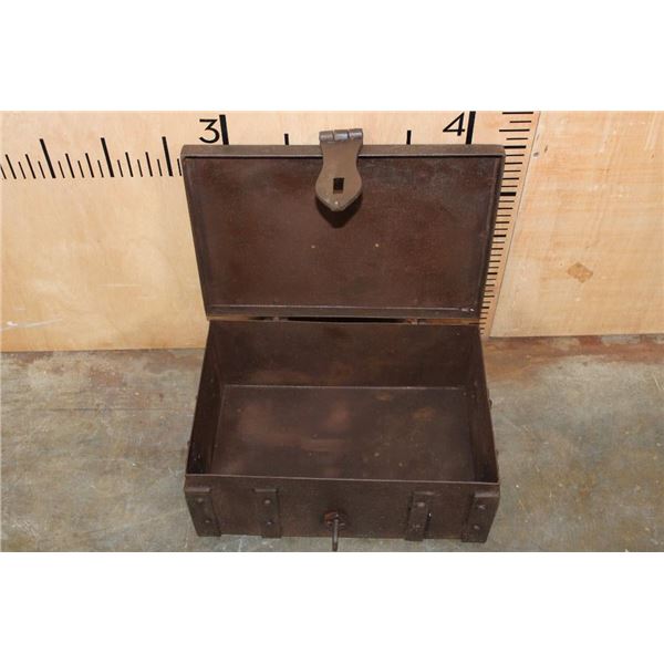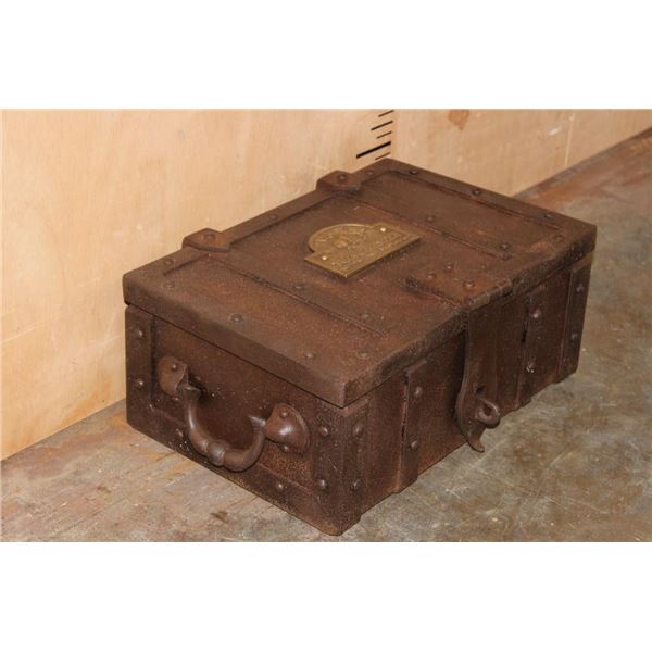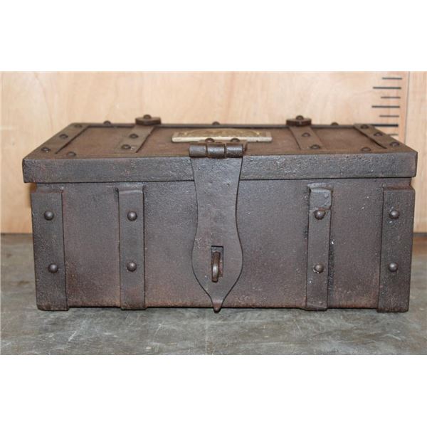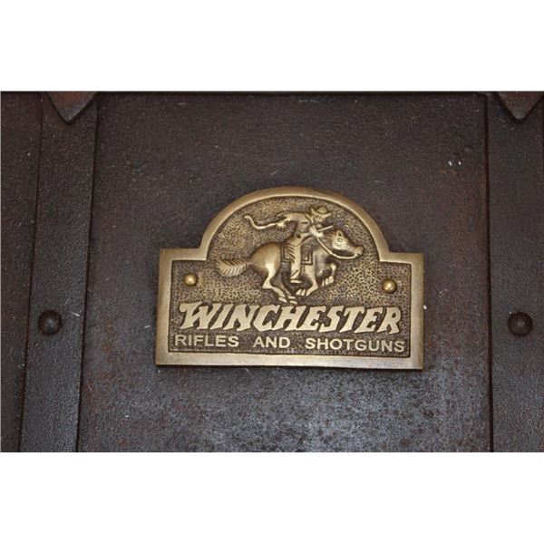 Big Cast Iron "Winchester" Strong Box SAFE. It measures 16" Long x 11" Wide x 7" Tall and Weighs 23 lbs. COLLECTIBLE SAFES AND LOCK BOXES