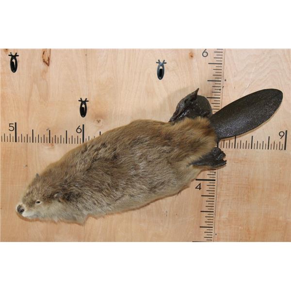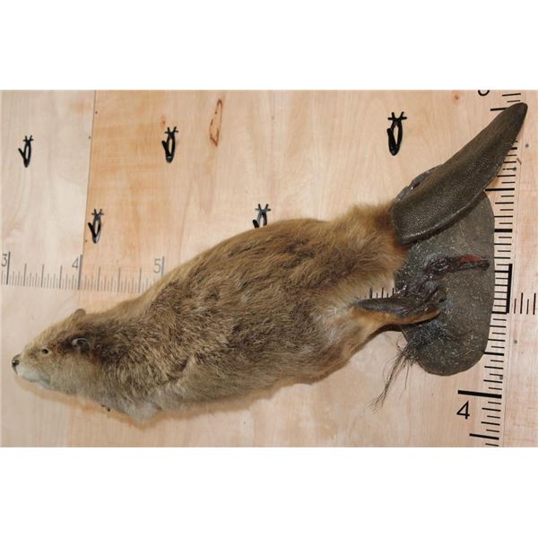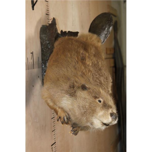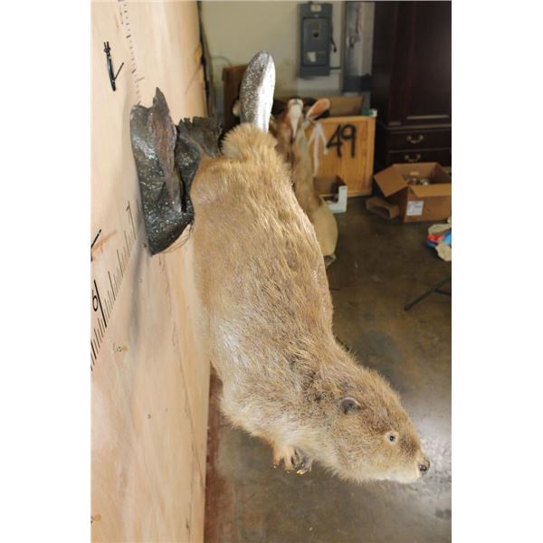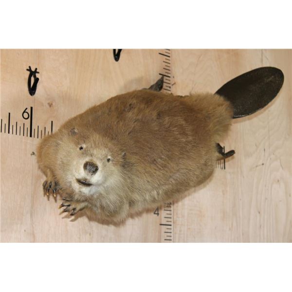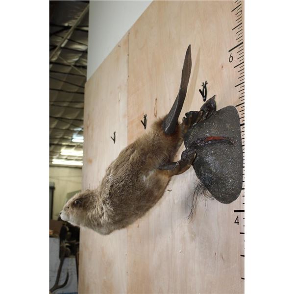 Very Nice, Clean, and Newer Life-sized Swimming BEAVER. It is mounted on a Wood Wall Hanging Base and is in Very Good Condition. He measures 44" Long x 21" Tall x 19.5" Depth. TAXIDERMY