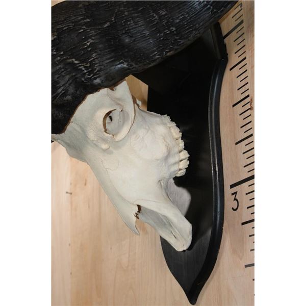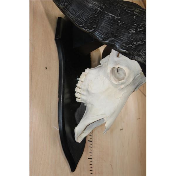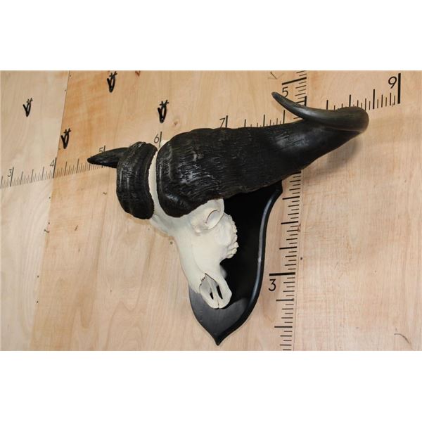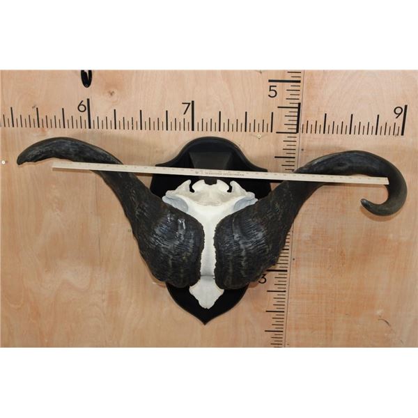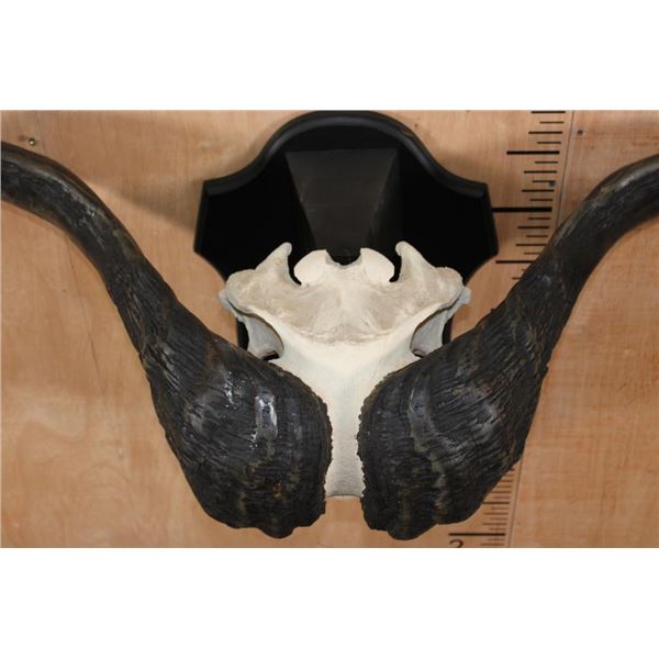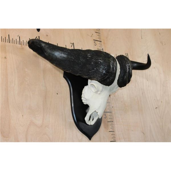 XXL "Daga Boy" CAPE BUFFALO Skull on a Wood Plaque. The Left Boss measures 14.5" and the Right Boss measures 13.75". It has a 42.5" Spread, even with a broken horn! (Broken in the wild). TAXIDERMY