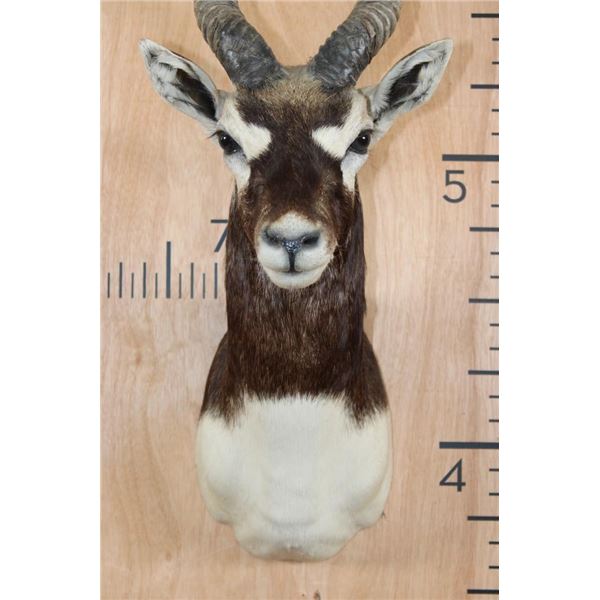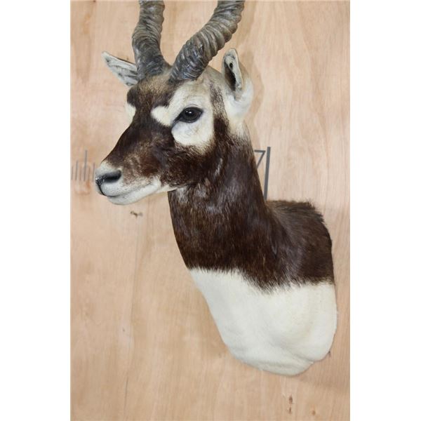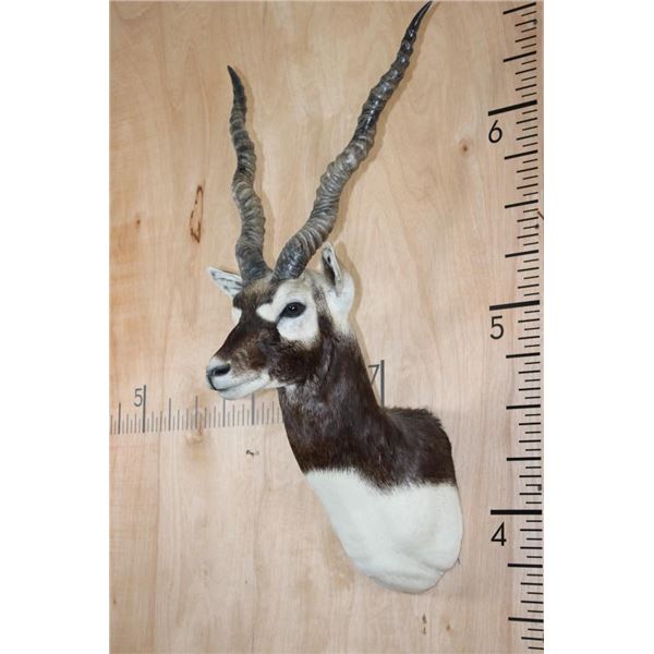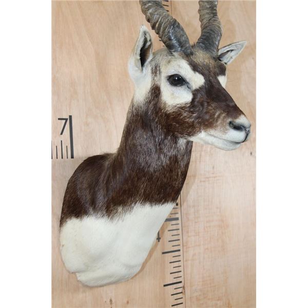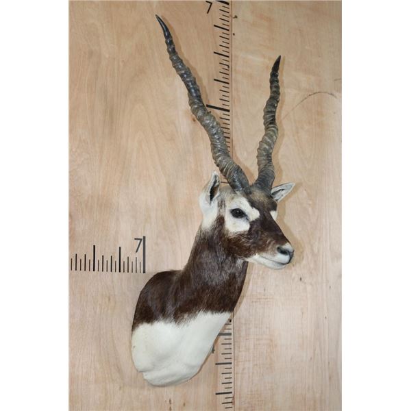 Very Nice, Clean, and Newer BLACKBUCK Shoulder Mount. The Left Horn measures 23 1/8" around the Spiral Ridge and the Right Horn measures 23" around the Spiral Ridge. It is in Very Good Condition. TAXIDERMY