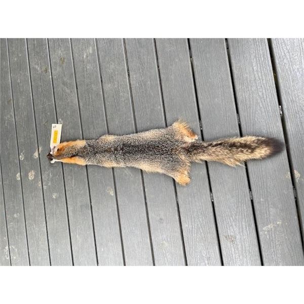 *New* Tanned Large GREY FOX Hide-Fur Skin. It measures 43" Long. This would be beautiful log cabin decoration. DECORATIVE TAXIDERMY