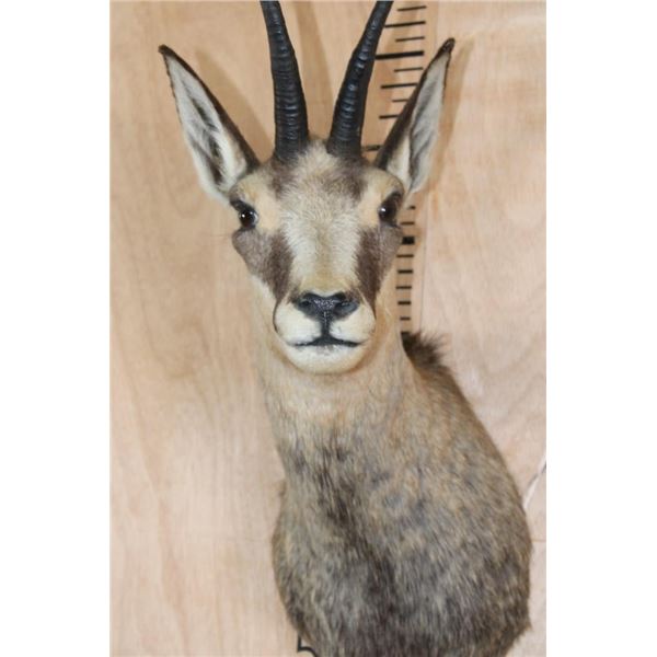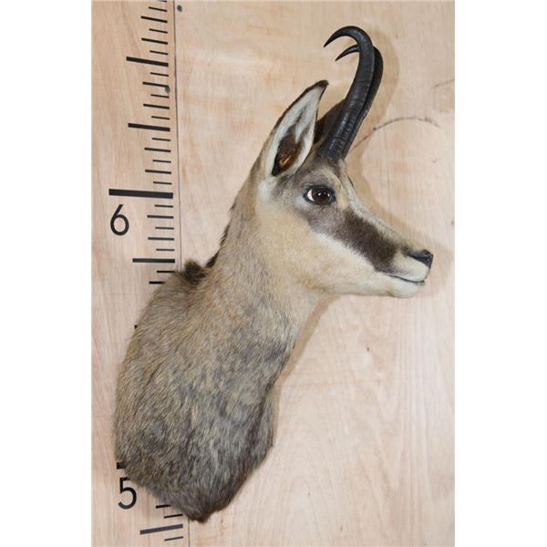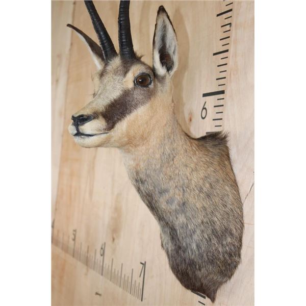 Very Nice, Clean, and Newer ALPINE CHAMOIS Shoulder Mount. The Left Horn measures 8" Long and the Right Horn measures 8 1/16" Long. It is in Very Good Condition. TAXIDERMY