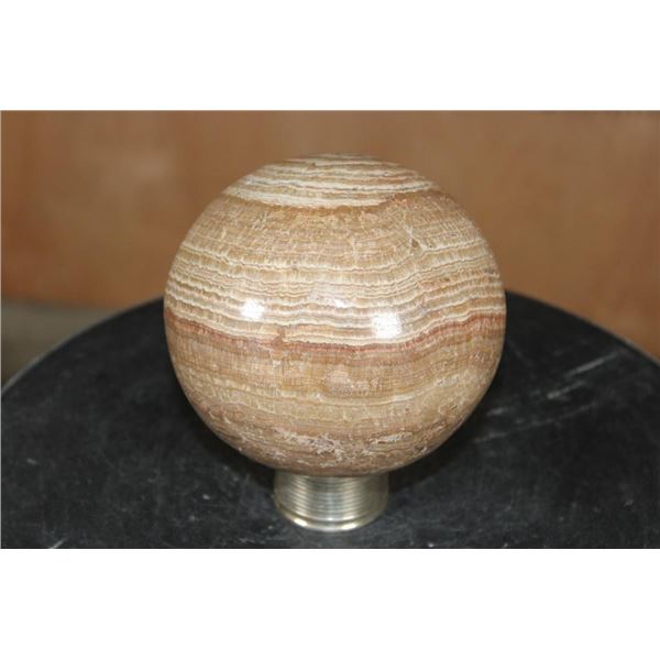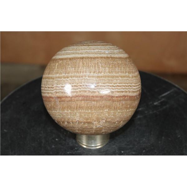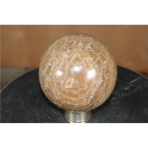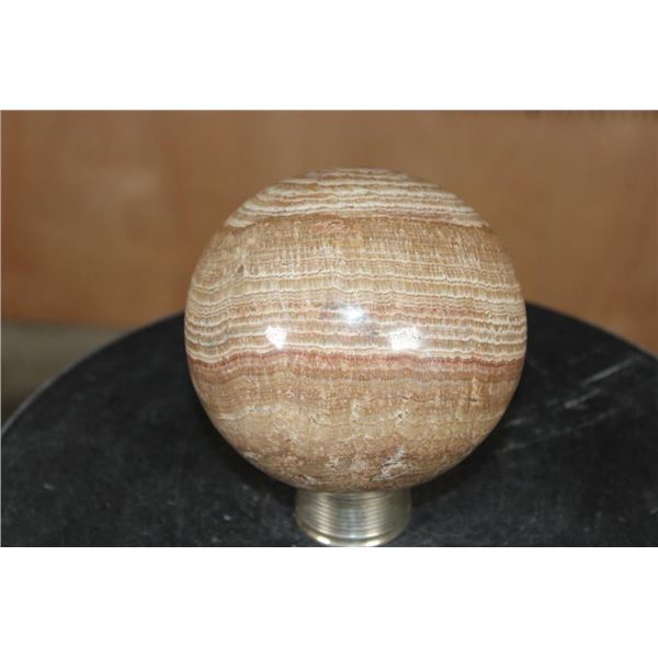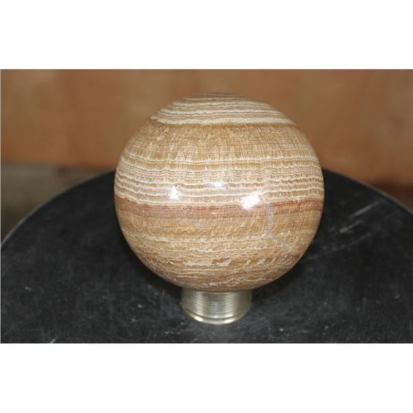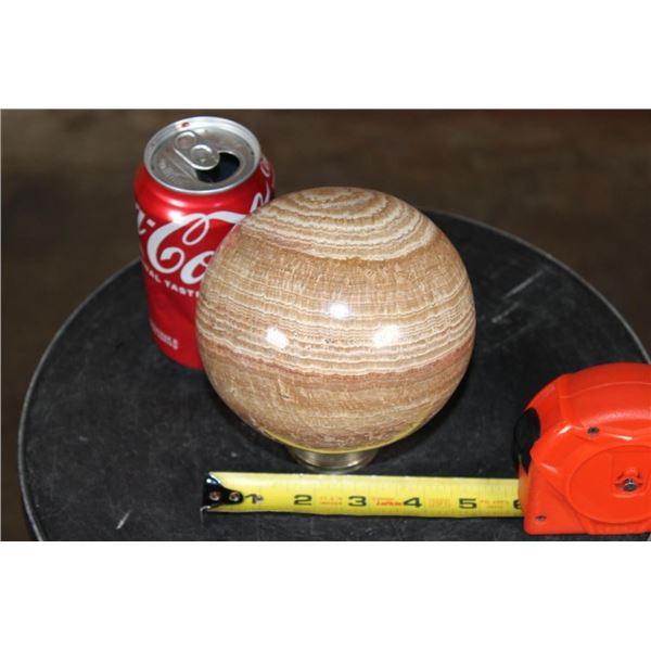 Big BANDED ARAGONITE Mineral Sphere with a Ring Stand. It measures 4 7/8" in Diameter and Weighs 5 lbs 10 oz. ROCKS FOSSILS MINERALS