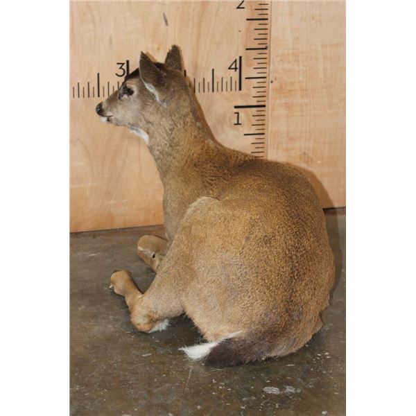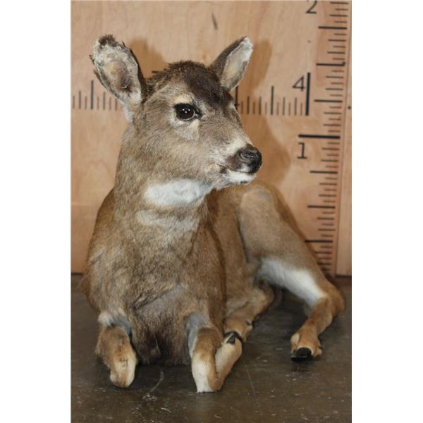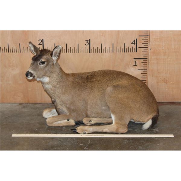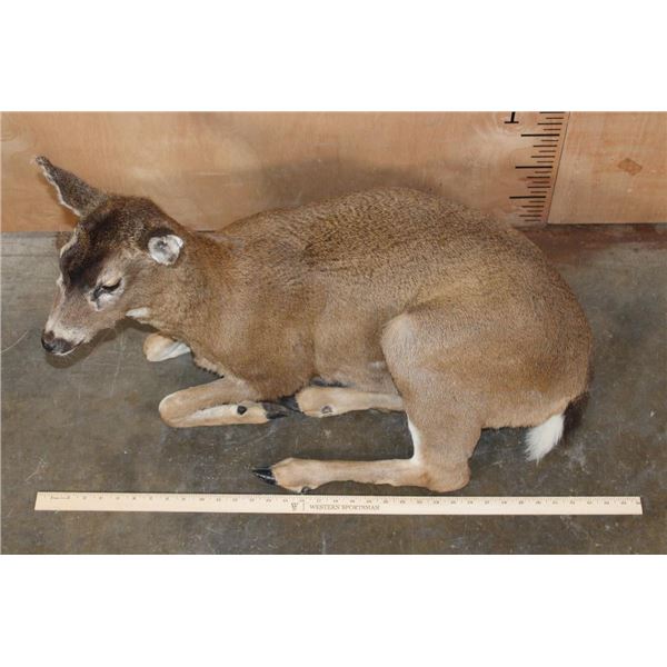 *Rarely Seen* Laying Life-sized Juvenile BLACK-TAIL DEER Fawn. It is freestanding and has No Base. It measures 30" Long x 17" Wide x 19.5" Tall. There is minor right ear damage but otherwise it is a nice mount in Good Condition. TAXIDERMY