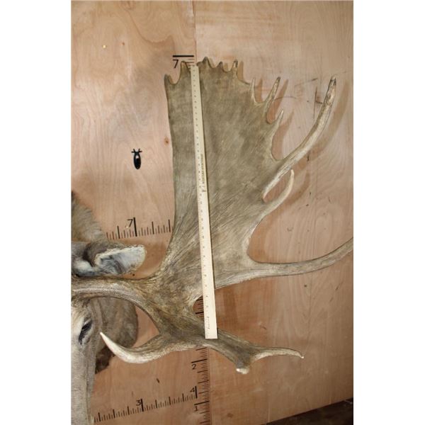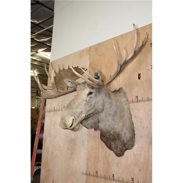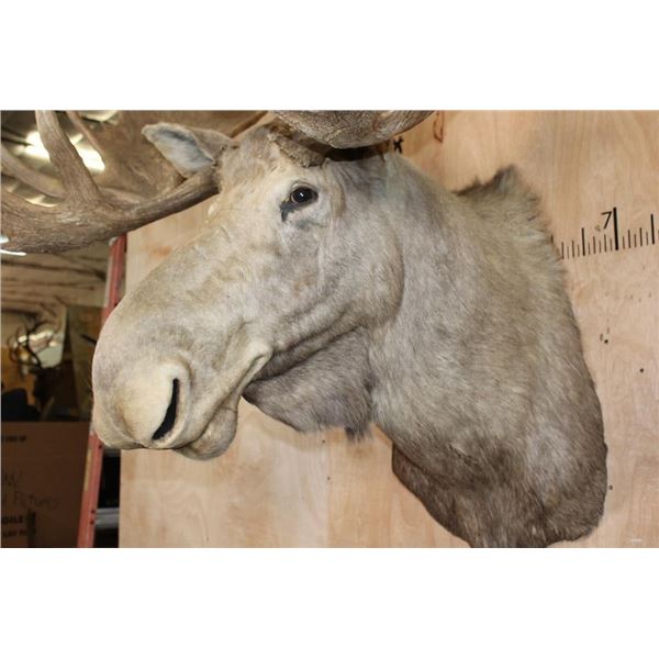 Huge 28-Point MOOSE Shoulder Mount with a 61" Spread. This is an older mount with minor left ear damage, otherwise it is in Good Condition. TAXIDERMY