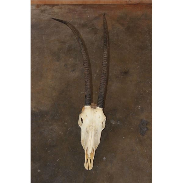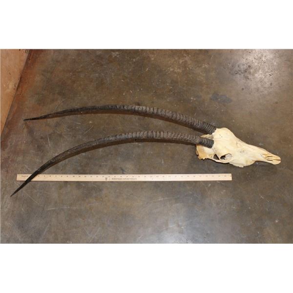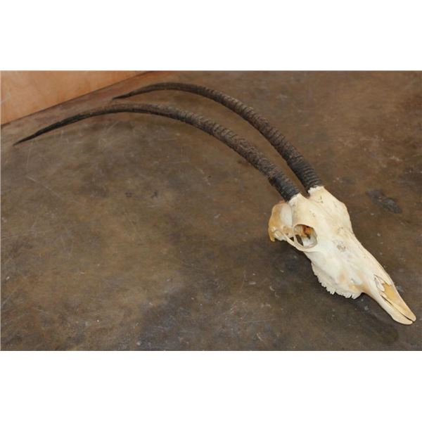 *TEXAS RESIDENTS ONLY*! Big SCIMITAR HORNED ORYX Skull. The Left Horn measures 36.75" Long and the Right Horn measures 37" Long. It has All its Teeth!