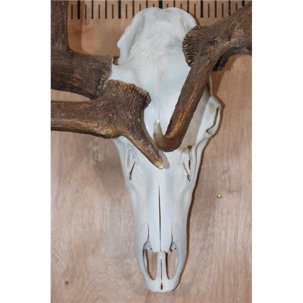 Freak 11-Point ELK Skull with 3 Antlers! You can see where the 3rd Beam is growing from the skull. It has All its Teeth, a 39" Spread, and a Heavy Duty Wall Hanger. TAXIDERMY