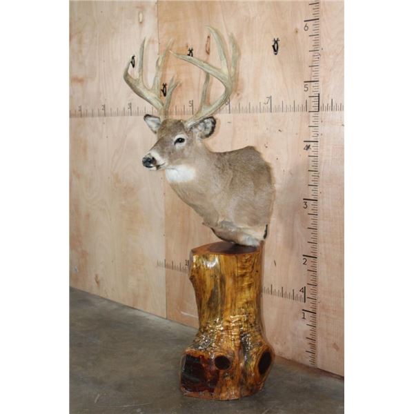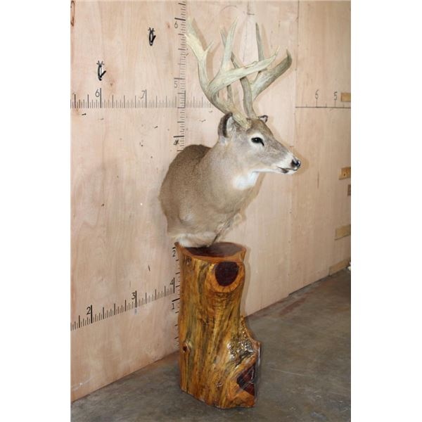 Very Nice, and Newer XL 11-Point WHITETAIL DEER Pedestal. It has a Heavy Rack with a 21" Spread and is mounted on a Cedarwood Stump Pedestal. It is in Very Good Condition. TAXIDERMY