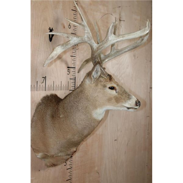 Nice, Clean, and Newer 14-Point WHITETAIL DEER Shoulder Mount. It has a 28 1/8" Spread and Drop Tines. It is in Good Condition. TAXIDERMY