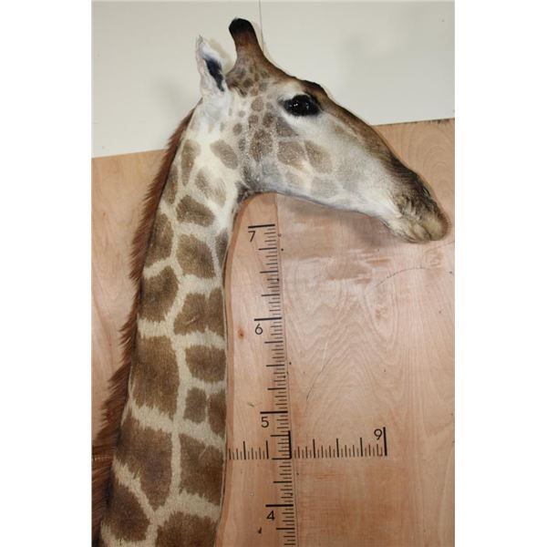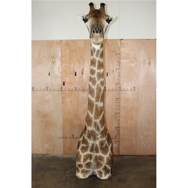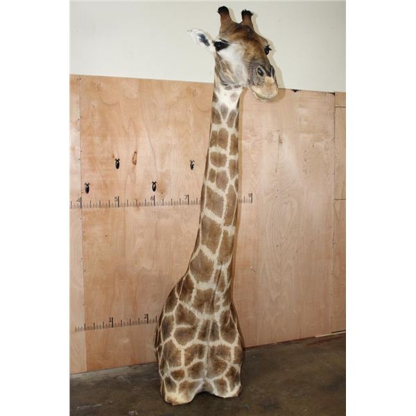 Nice Free Standing GIRAFFE Floor Pedestal Mount. It has beautiful colored spots and is in Good Condition. It measures 8' 9" Tall x 26" Wide x 5' 8" Long and is light weight. The Next Lot is the Back Hide from this Giraffe. TAXIDERMY