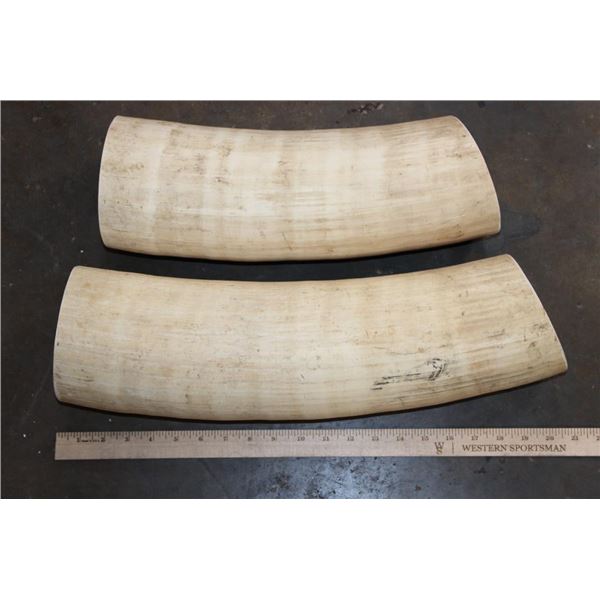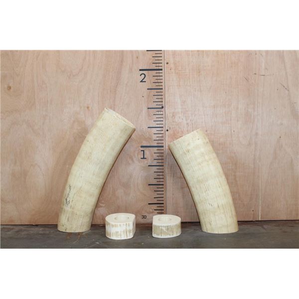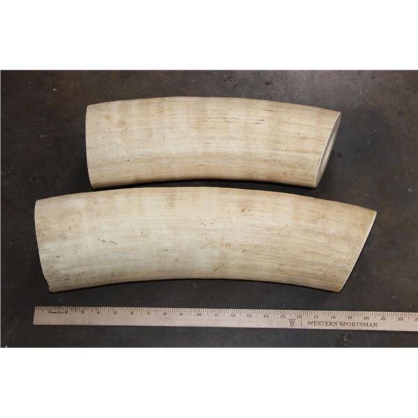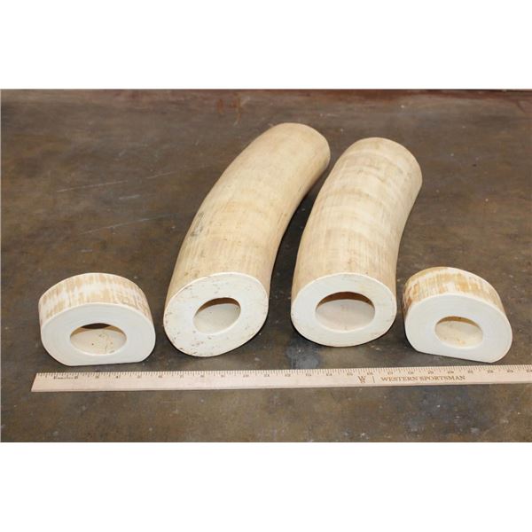 *TEXAS RESIDENTS ONLY* 4 ELEPHANT IVORY Tusk Sections. The sections measure?19 6/8" Long and 5.5" in Diameter-Weight: 10.65 lbs, 16" Long and 5 5/16 in Diameter-Weight: 7.80 lbs, 2.25" Long and 5 1/16" x 4"-Weight: 1.95 lbs, and 2" Long and 5 5/16" x 4"-Weight: 1.95 lbs. The Total Weight for all is 22.45 lbs. (ONE$) TAXIDERMY