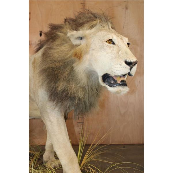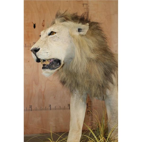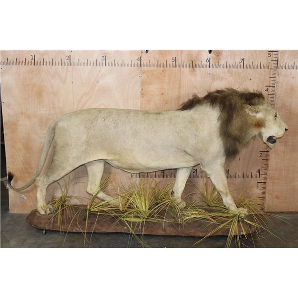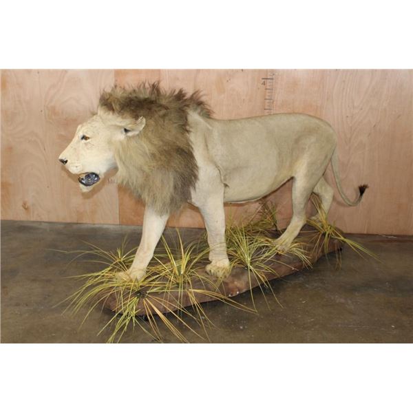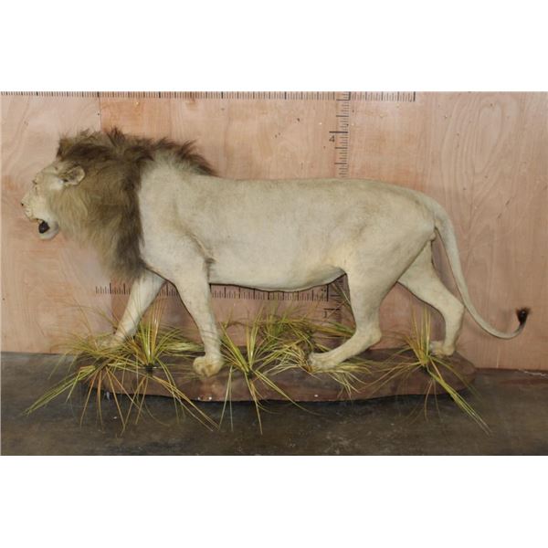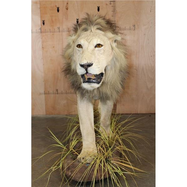*TEXAS RESIDENTS ONLY* ! Big Life-sized AFRICAN LION with a Thick Mane. It has All its Claws and is mounted on a Base with Wheels. The Lion measures 7' 11" Long from the Nose to the Tail x 2' Wide x 4" Tall. TAXIDERMY