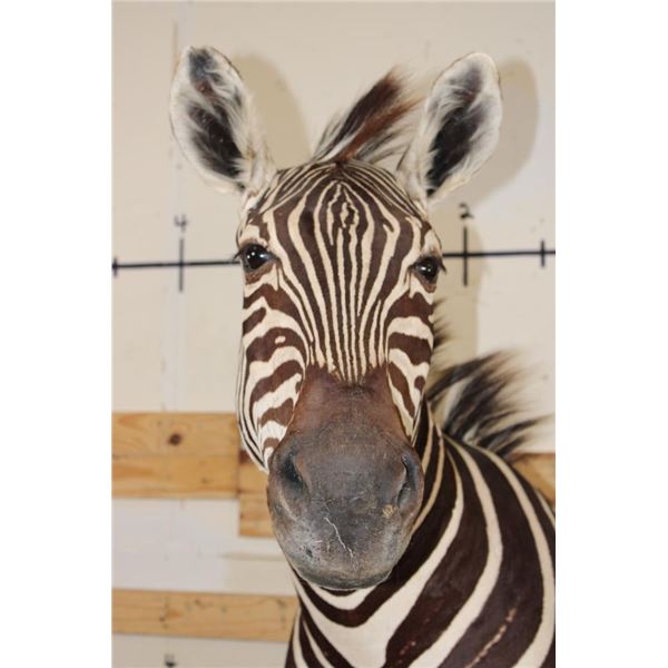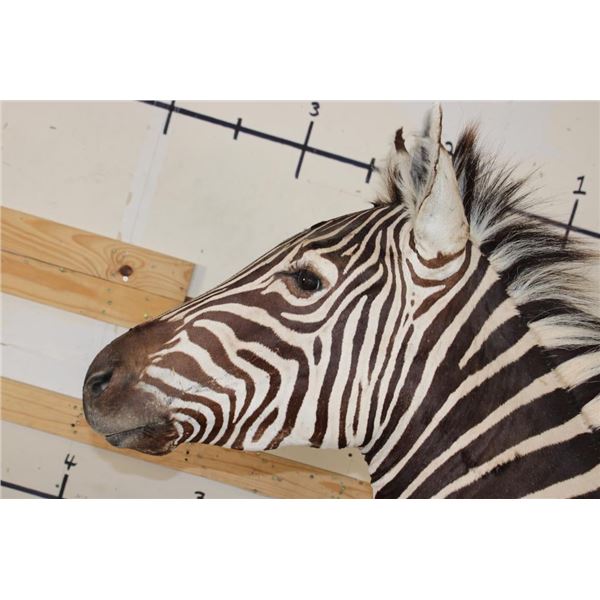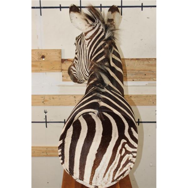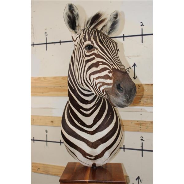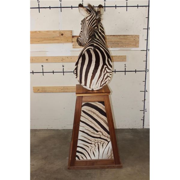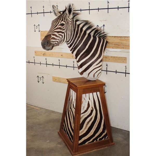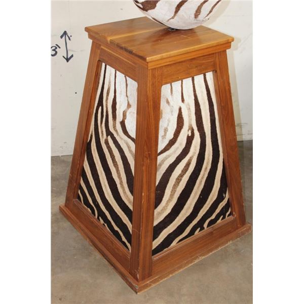 Very Nice ZEBRA Pedestal Mount. It has 4 ZEBRA Hide Panels on its Wooden Base. TAXIDERMY *This item was sold in our last auction. The buyer did not pay, it is being resold*.