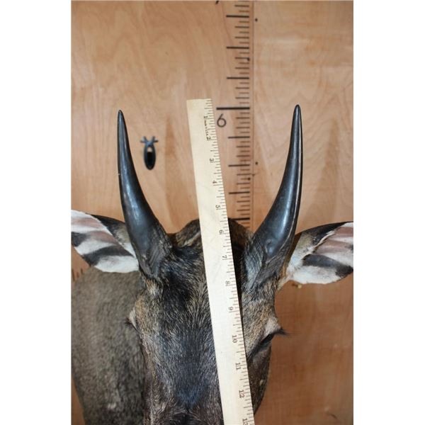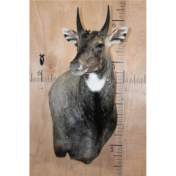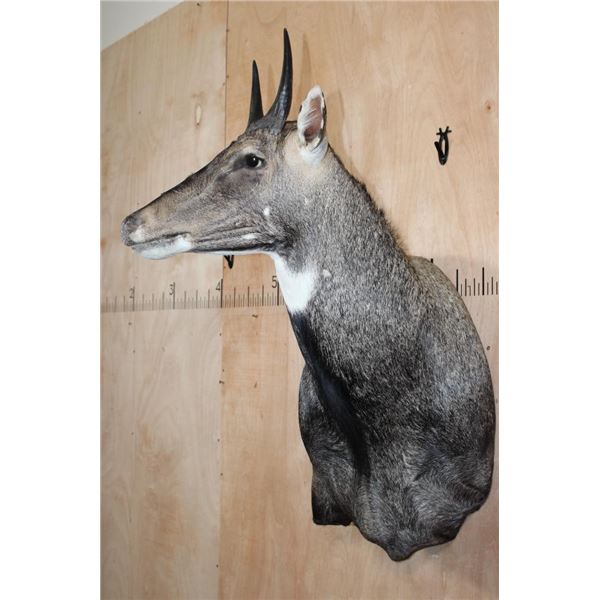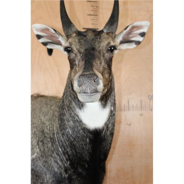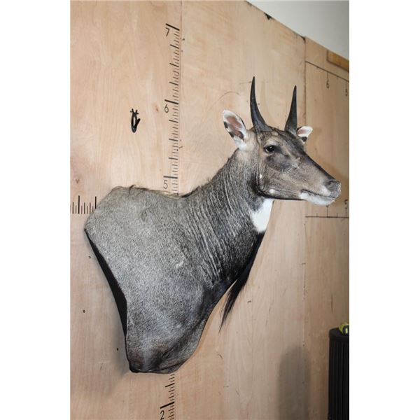 Very Nice, Clean, and Newer NILGAI Wall Pedestal. The Left Horn measures 8 3/8" Long and the Right Horn measures 8.25" Long. This is a Big Nilgai in Very Good Condition. TAXIDERMY