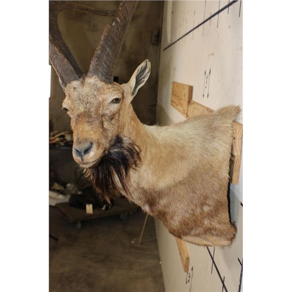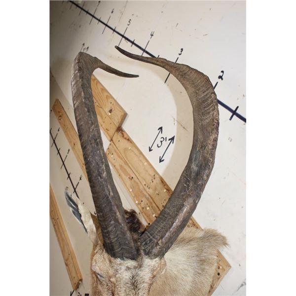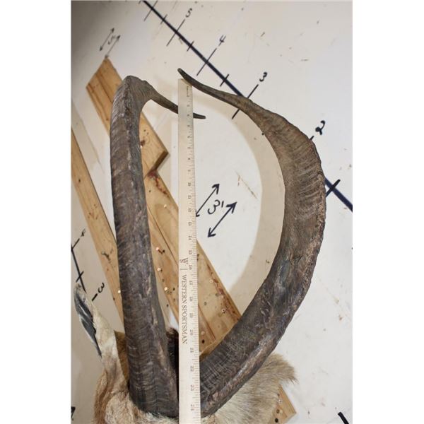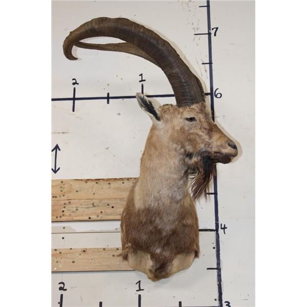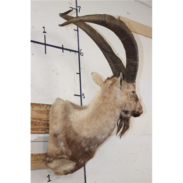 Very Nice and Clean PERSIAN IBEX Shoulder Mount in Very Good Condition. The Left Horn measures 33.75" Long and the Right Horn measures 34" Long. TAXIDERMY