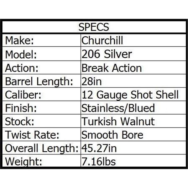 The Churchill 206 shotguns are new to the Canadian market. Churchill has custom designed this Over/Under shotgun to be loaded with features and value right out of the box. The Churchill 206 Deluxe Wood features a crisp trigger and a select walnut stock, well endowed with aggressive checkering for a sturdy grip with gloves or in wet conditions. Included with the Churchill 206 is a branded soft case.