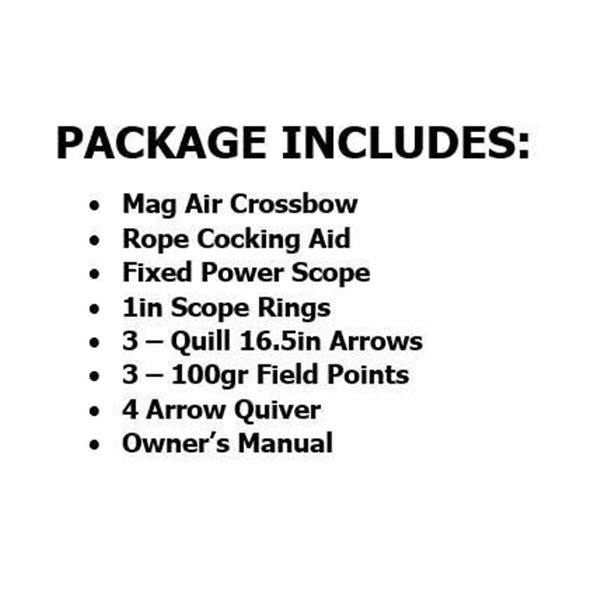 - Fully accessorized, The Mag Air is up to 1lb lighter than most competitor's bare crossbows.