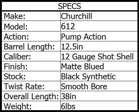 Lot 37 CHURCHILL 612 12ga PUMP 12.5in 4rnd