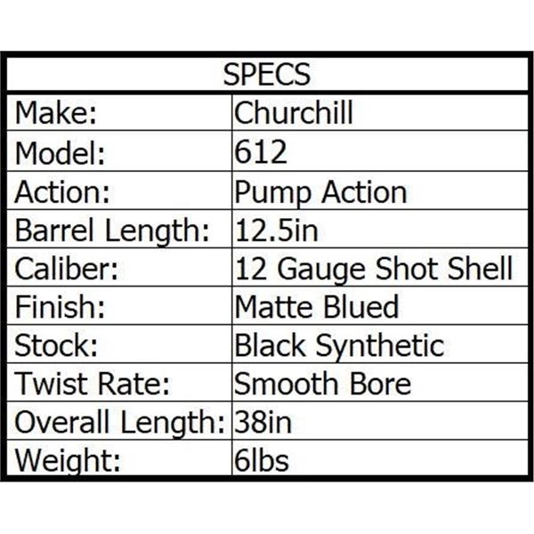 These new shotguns from Churchill are new to the Canadian market. Churchill has customs designed this security shotgun to be loaded with features and value right out of the box. The Churchill 12-guage pump action shotgun has a 12-inch barrel with a raised front sight.