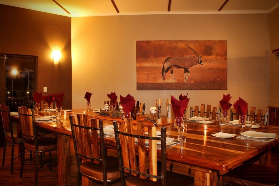 Luxury chalets with warm water, electricity, heaters and comforters. Experience nature on your doorstep, wake-up refreshed in the morning and watch as oryx, hartebeest and warthog graze around the camp at night. All the chalets face a permanent waterhole, 50 meters away where game come to drink water at night.