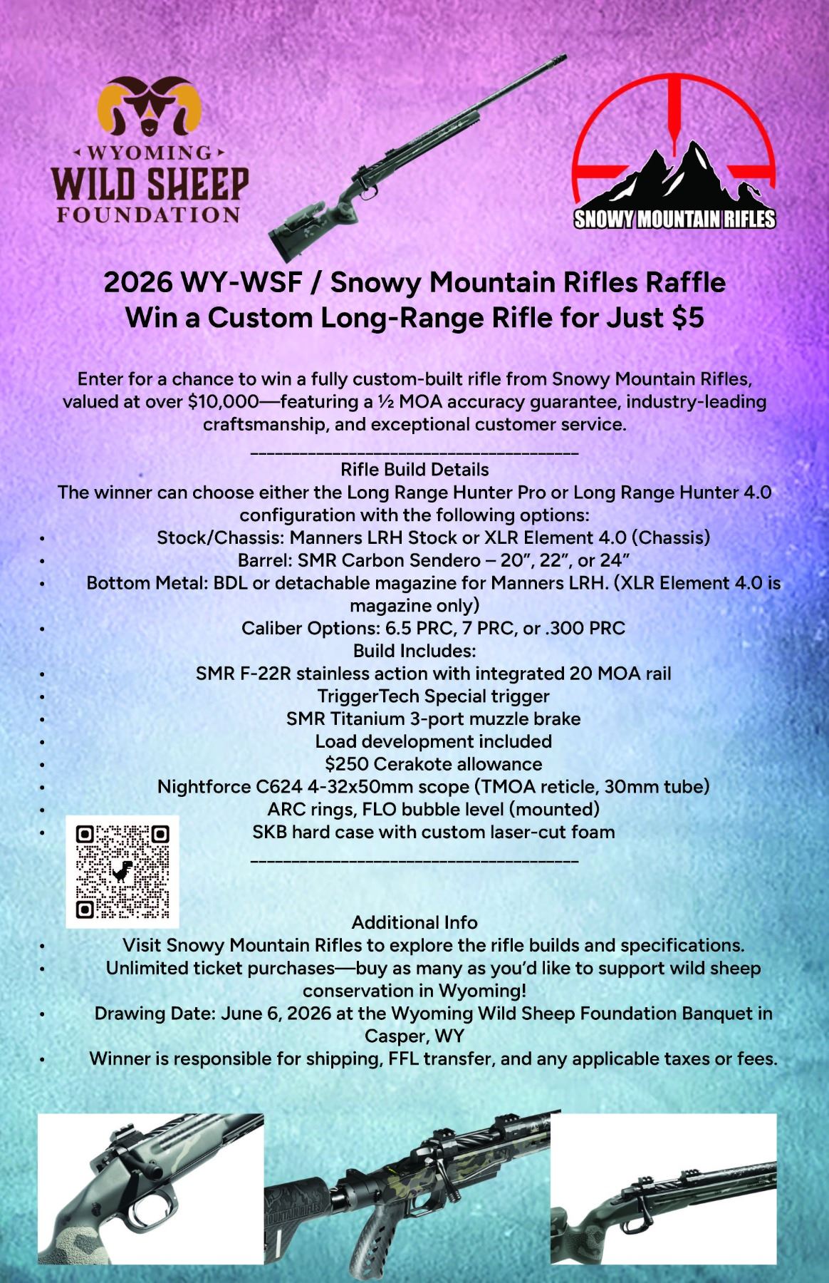 Drawing Date: June 6, 2026 at the Wyoming Wild Sheep Foundation Banquet in Casper, WY