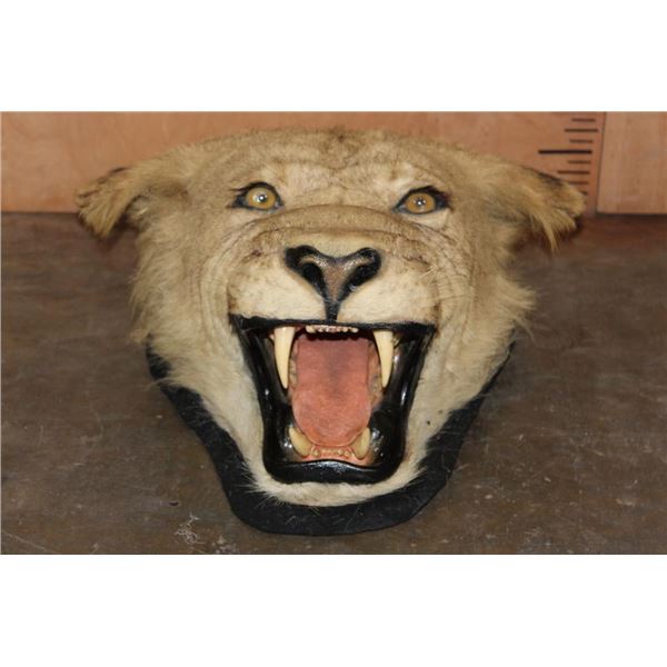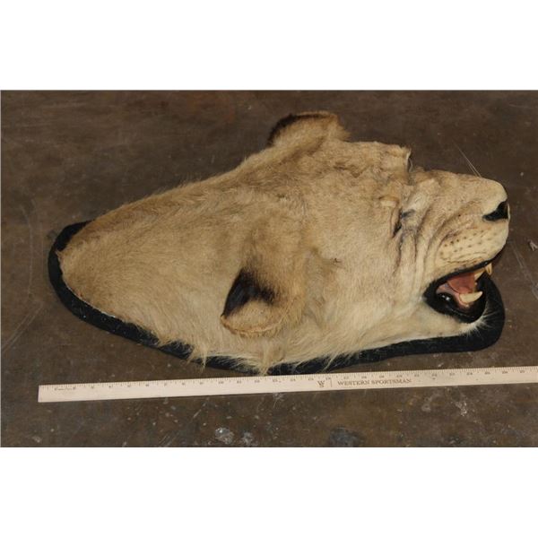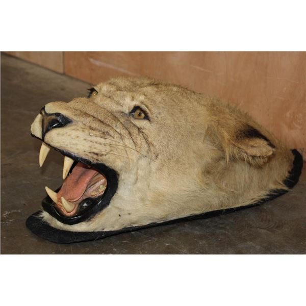 *TEXAS RESIDENTS ONLY*! Big AFRICAN LIONESS Head Mount. It measures 26" Long x 19" Wide x 10" Tall and is mounted on black felt. It is in Good Condition. TAXIDERMY?