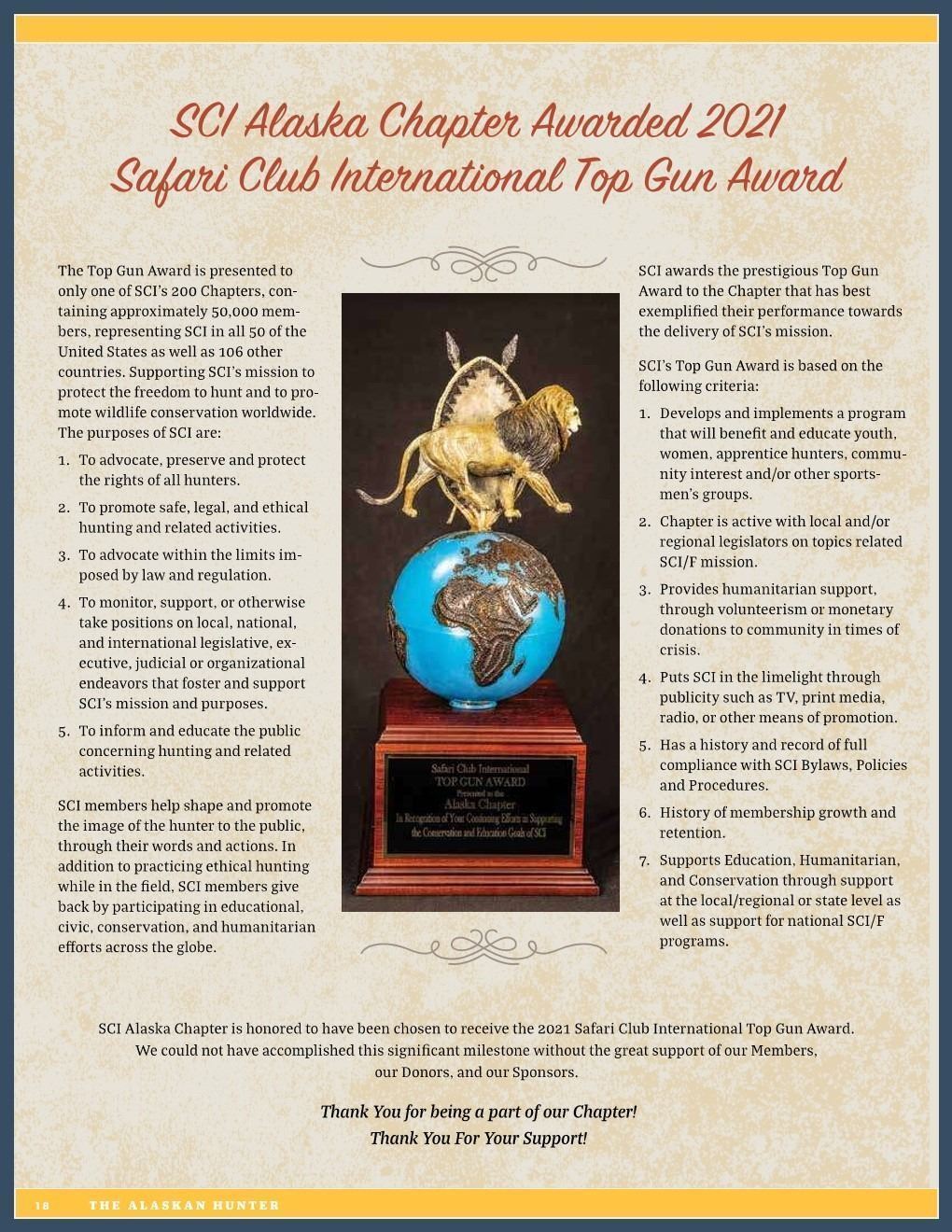Safari Club International and SCI Alaska Chapter are proud to offer this life time membership for both Safari Club International and the SCI Alaska Chapter.