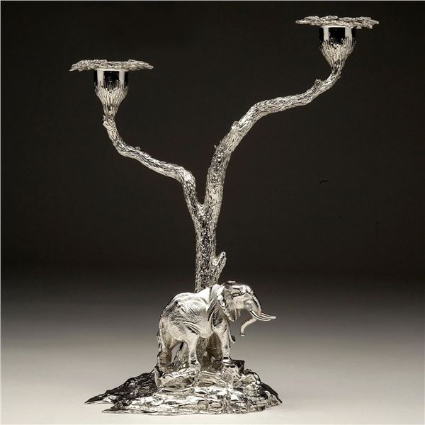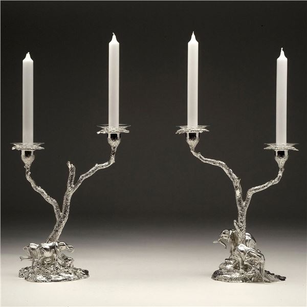 Elephant & Mopane Tree Candelabra Pair In Silver - Patrick Mavros | Sterling Silver | $34,000