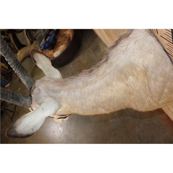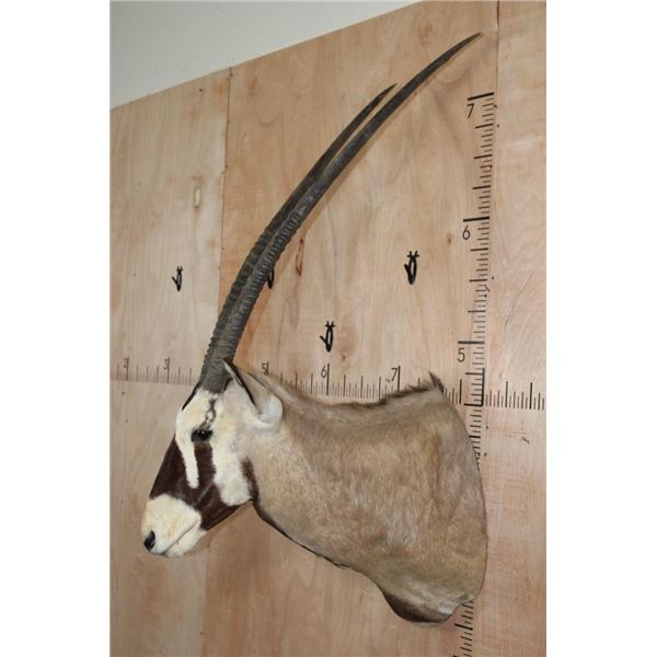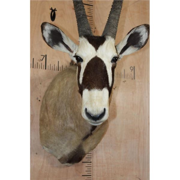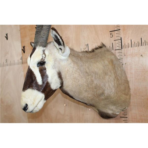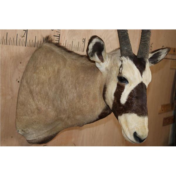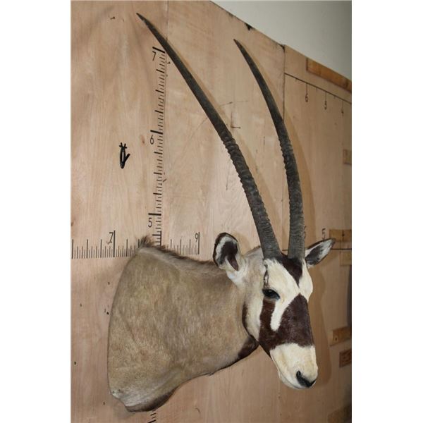 Largest GEMSBOK Shoulder Mount in the Sale! The Left Horn measures 41.25" Long and 7" around the Horn Base. The Right Horn measures 40" Long and 7.25" around the Horn Base. This is a Nice Mount in Good Condition. TAXIDERMY