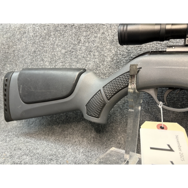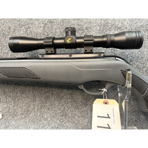 License required. Fluted barrel. Fixed 4x scope. Deluxe stock.