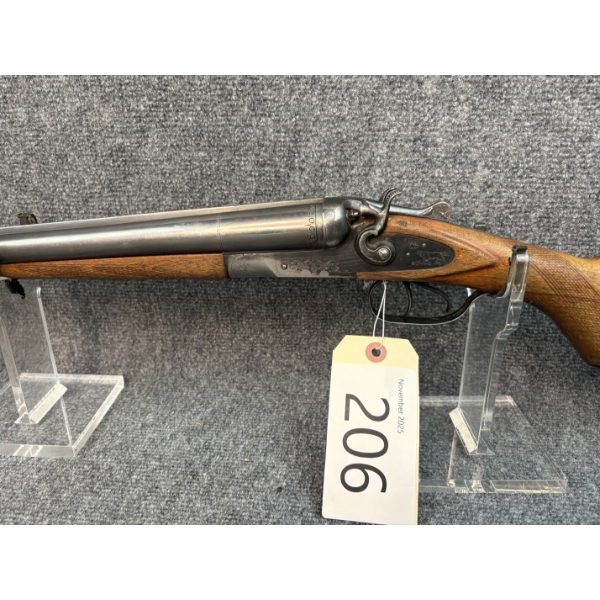 Lots of carry wear. Small crack in the butt-stock behind the receiver right side. No rust. Slight freckling. Exposed hammers. Locks tightly.