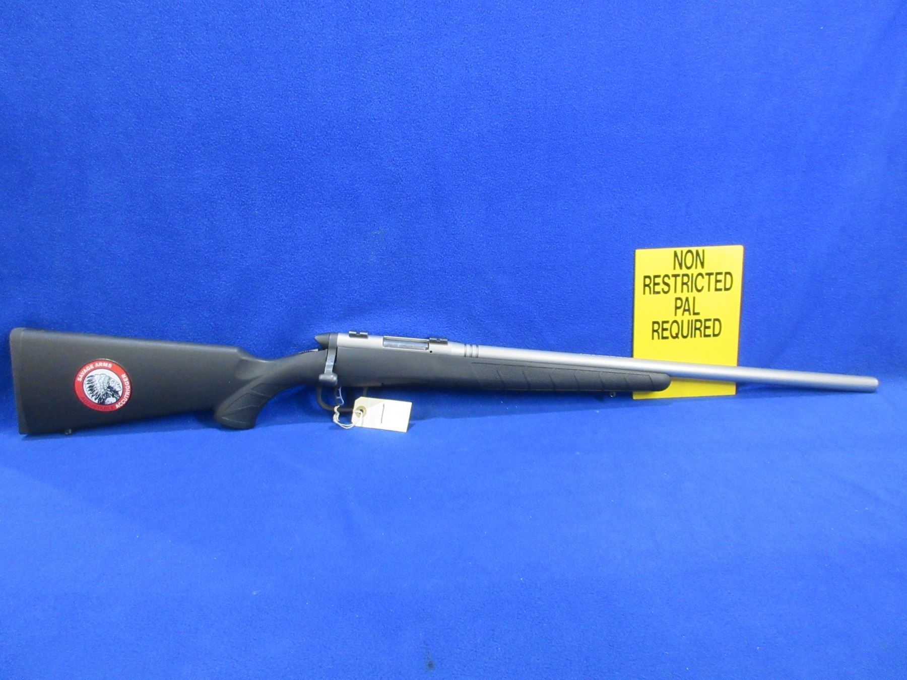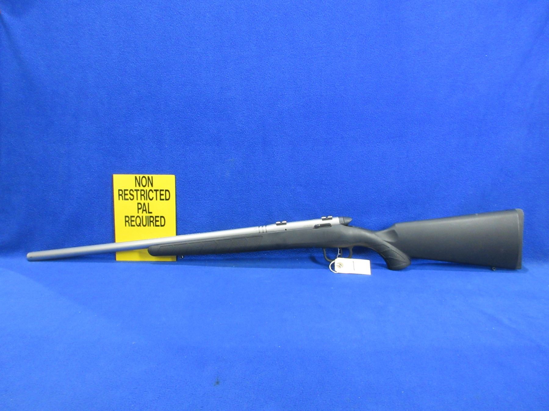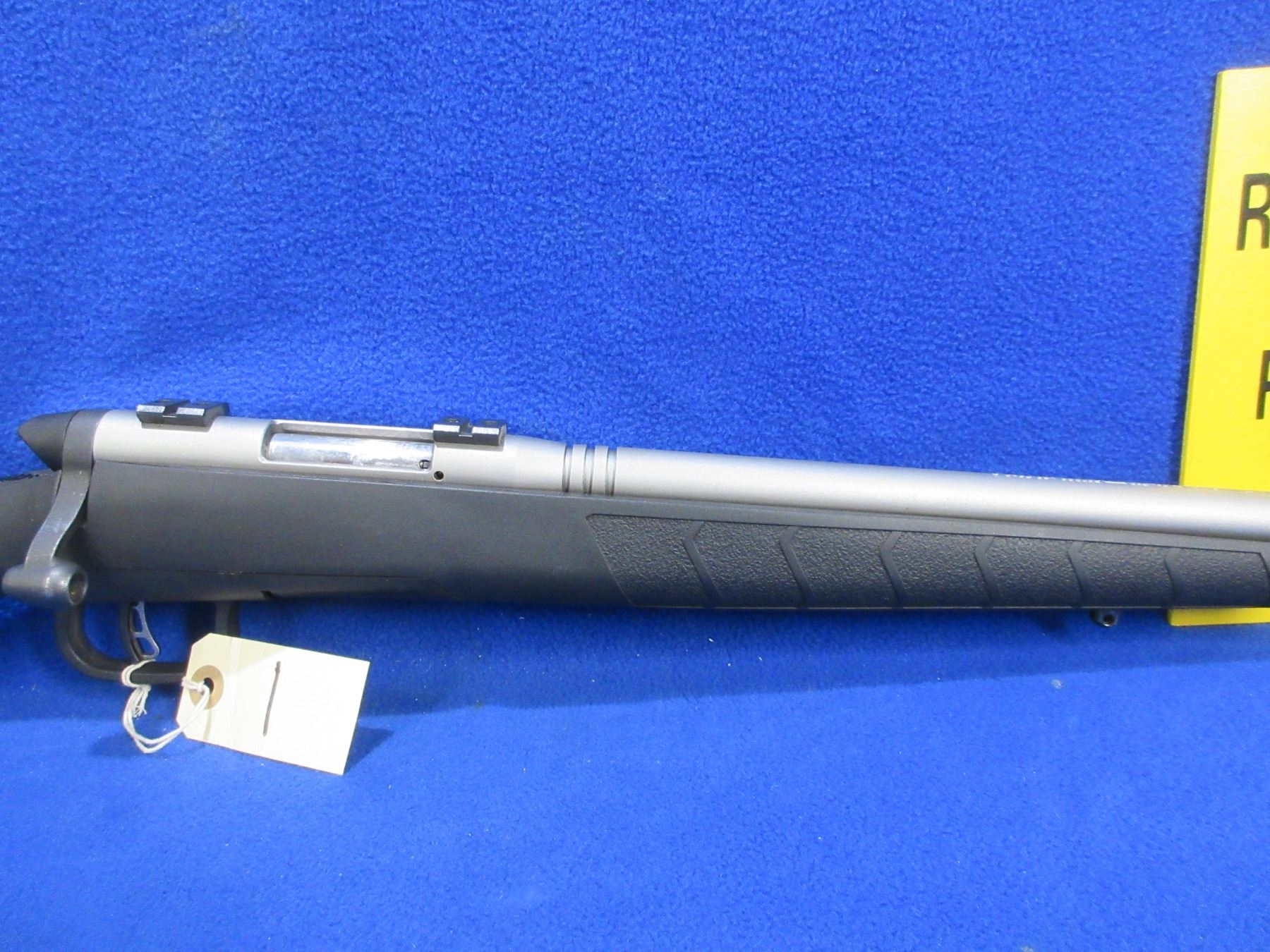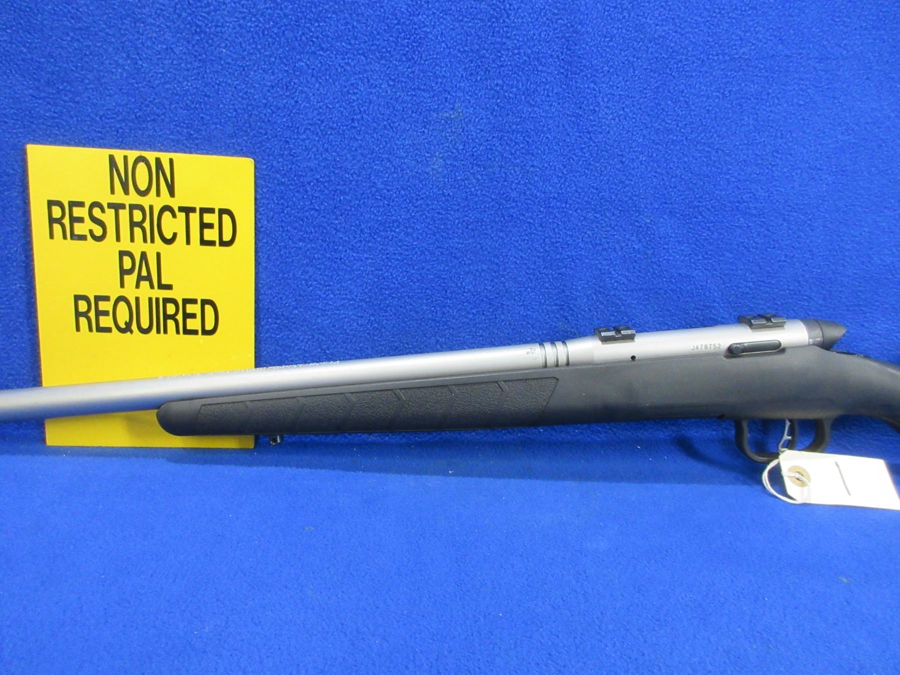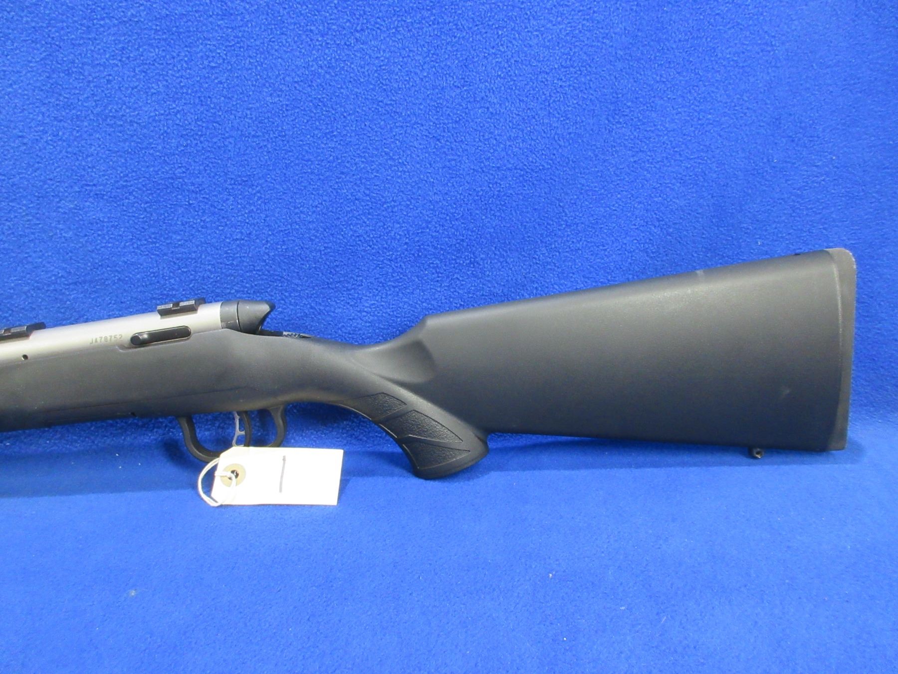 Non-Restricted - Savage B-Mag in 17 WSM - This is a bolt action rifle with removable rotary magazine and AccuTrigger, action appears to be in good to very good working order. Heavy barrel is 22", rifling is very good, Stainless Matte finish is good to very good, has no sights but has Weaver style bases, synthetic stock is good to very good, length of pull is 14", rubber butt plate good, comes with swivel studs. Ser # J478752