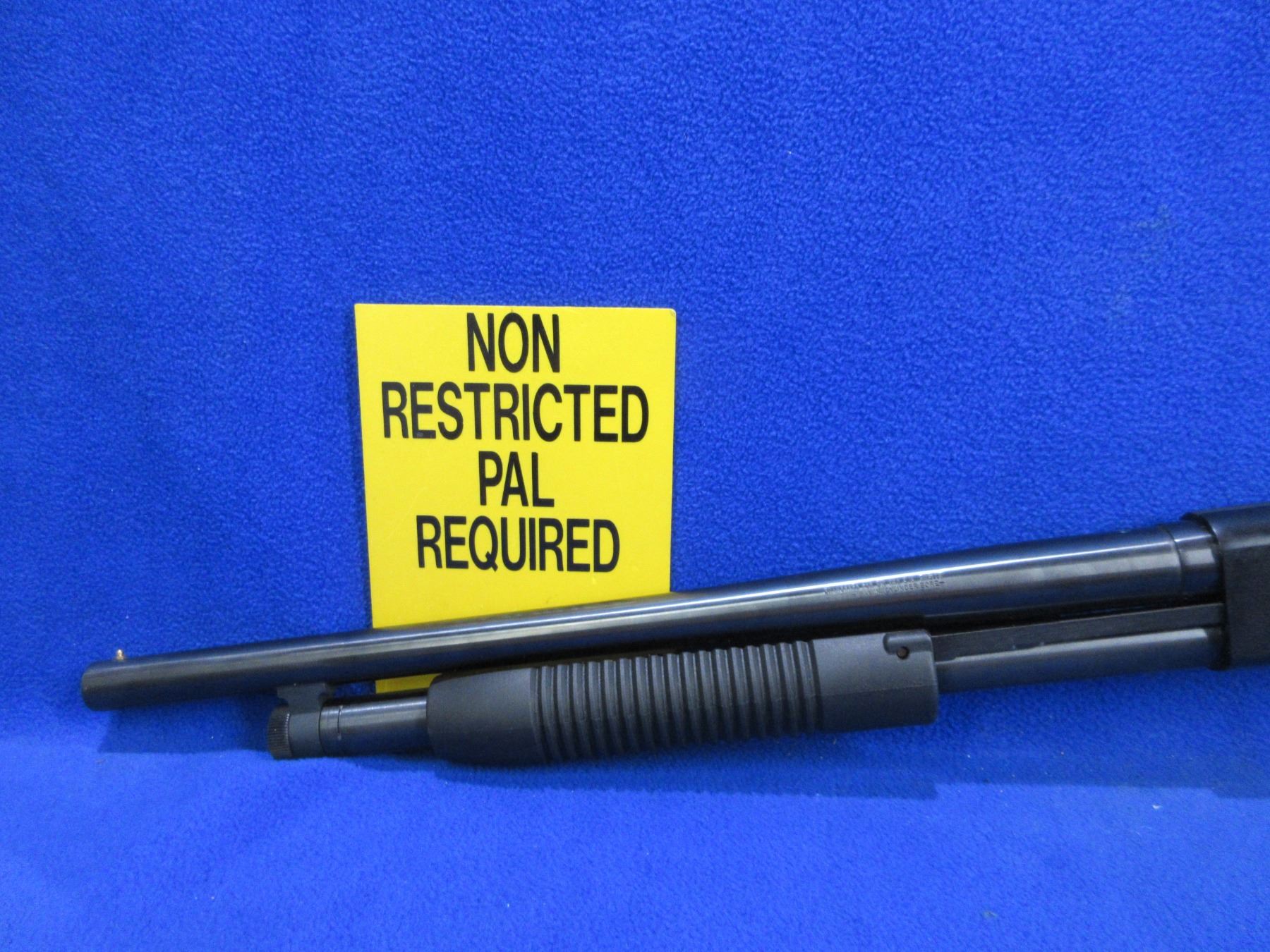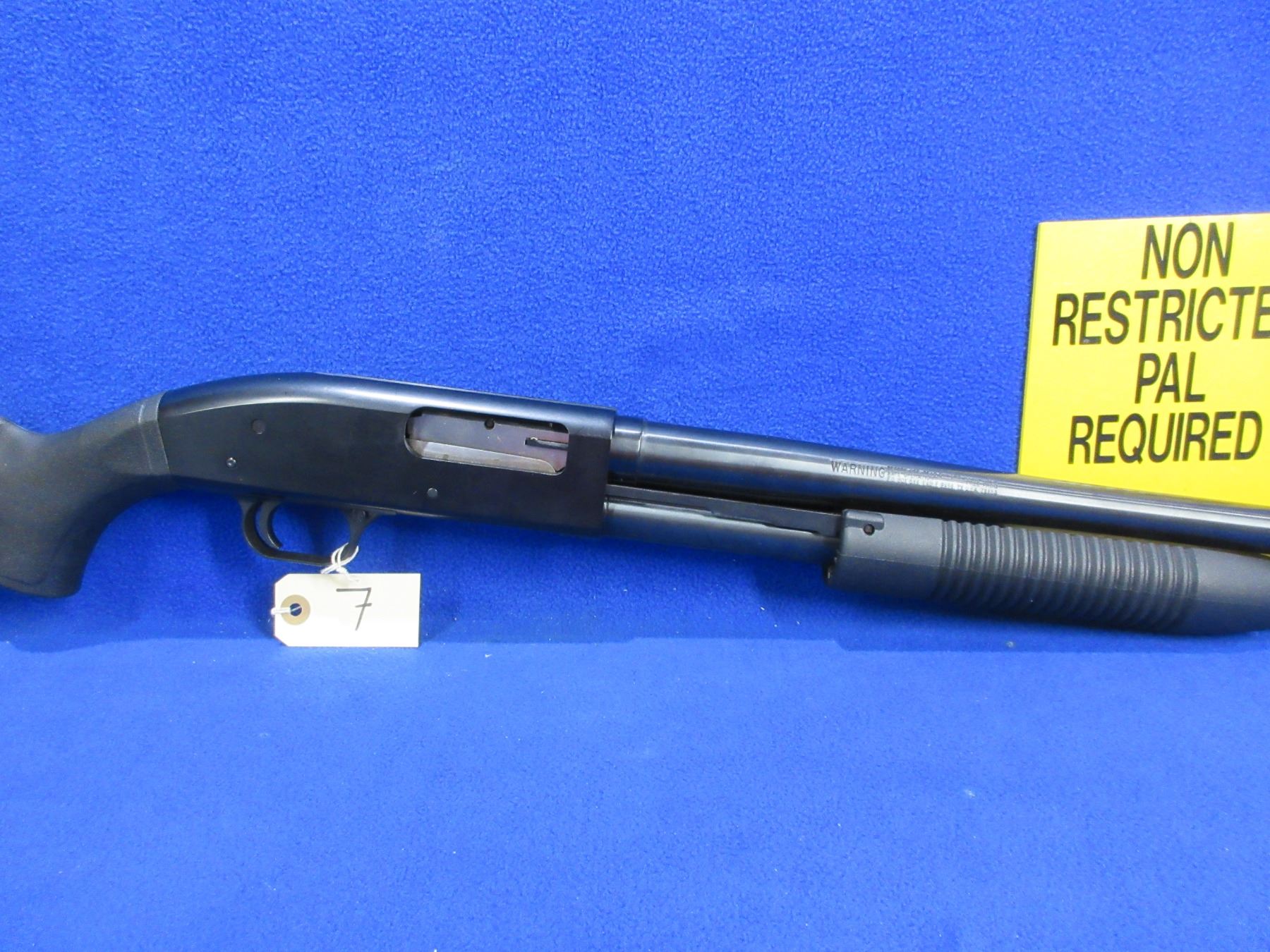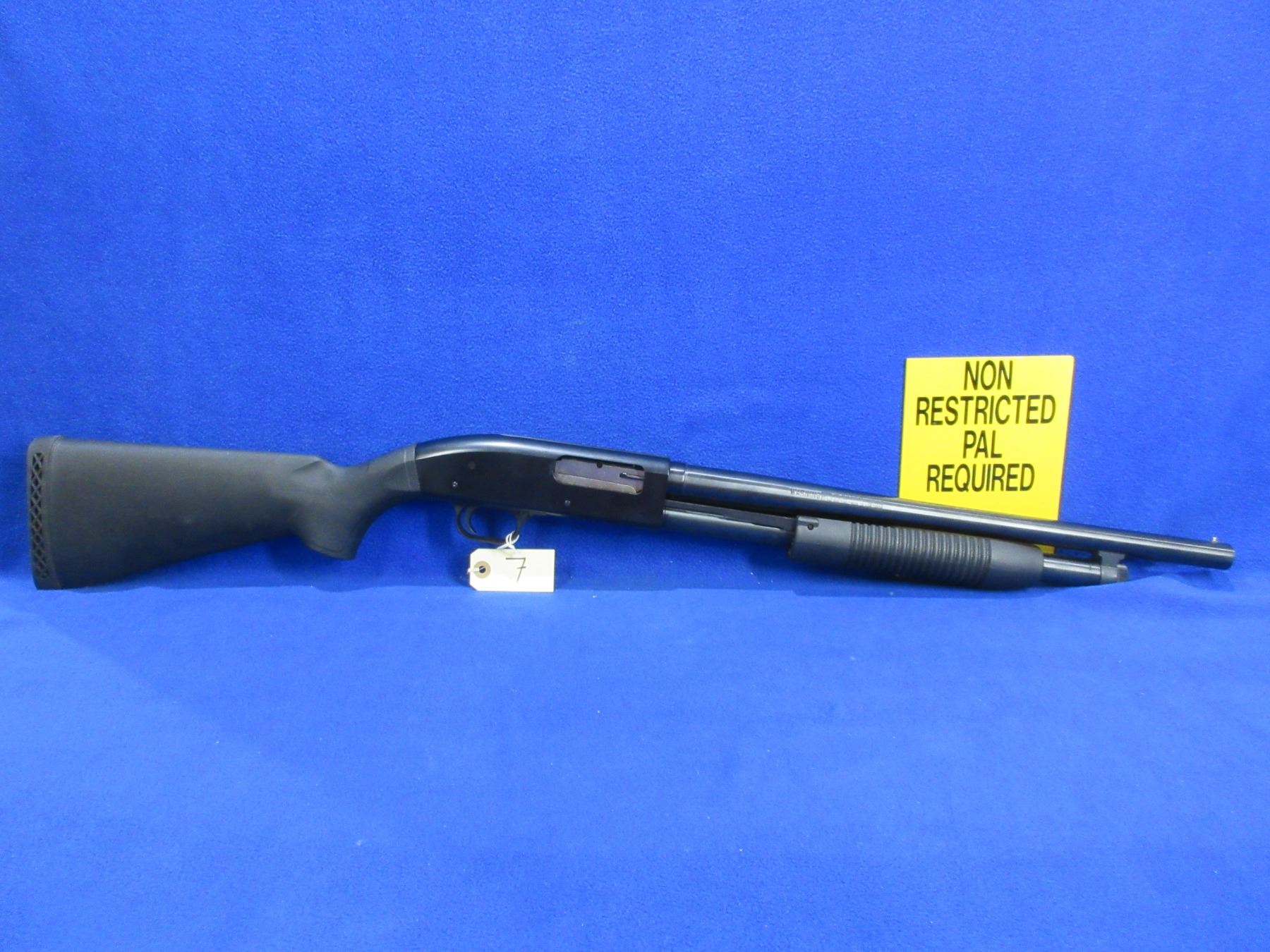 Non-Restricted - Mossberg Model 88 Maverick in 12 Ga. 2 3/4" / 3" - This is a pump action shotgun with tube magazine, action appears to be in good to very good working order. Barrel is 18 1/2", bore is good, bluing is good to very good, has bead front sight, synthetic stock is good to very good, synthetic forearm is good to very good, length of pull is 14 1/4", rubber recoil pad good. Ser # MV92017U