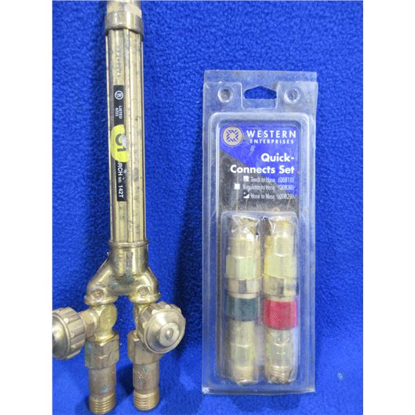 2 Oxy-Acetylene Heating Tips/Nozzles, Torch Handle & Quick Connects Set